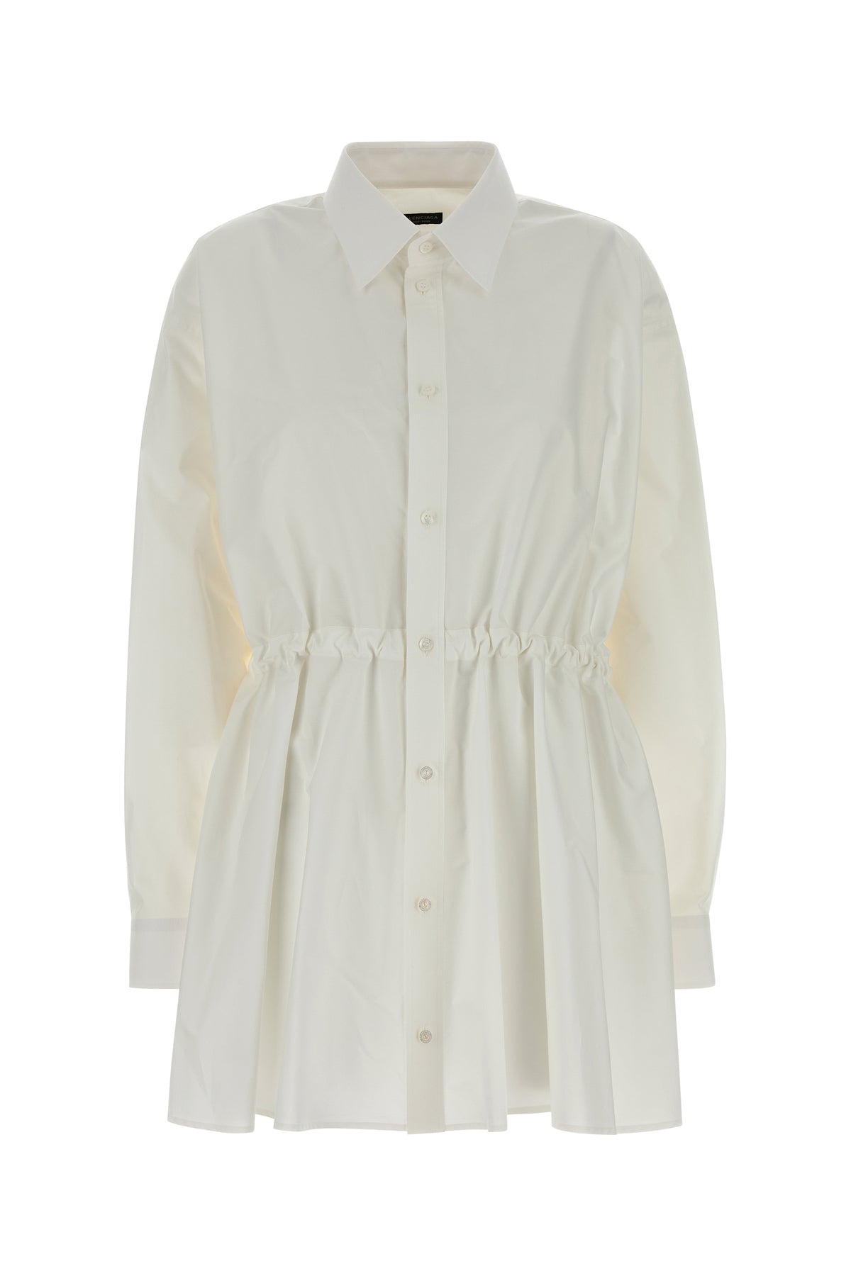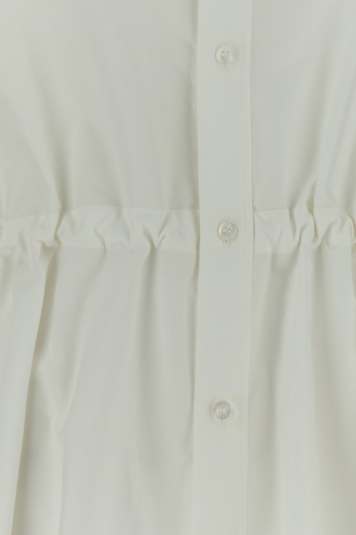 Shirt dress realized in pure cotton poplin characterized by tonal embroidered logo at the back.
