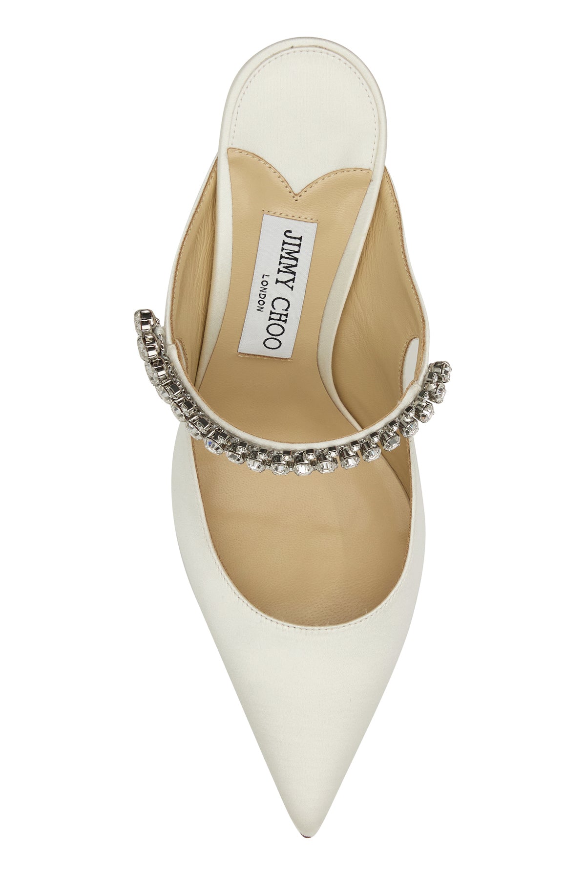Mules realized in satin characterized by jewel strap on the instep.