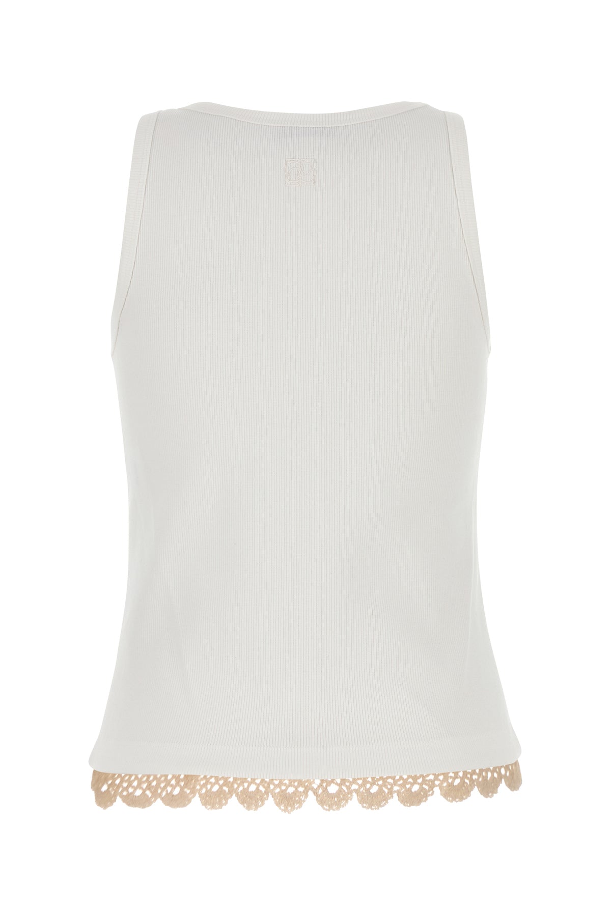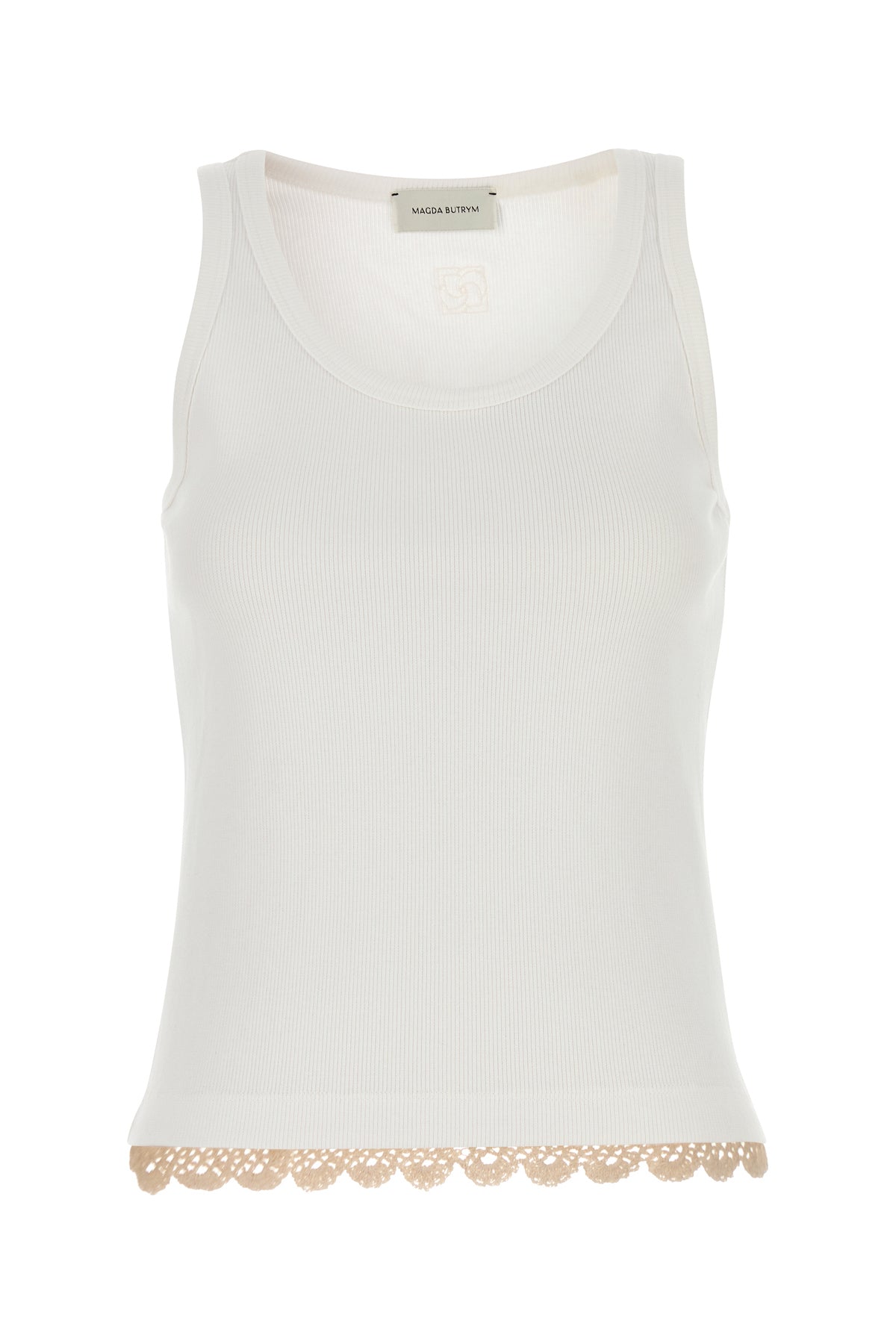 Tank top realized in stretch cotton characterized by embroidered logo at the back.