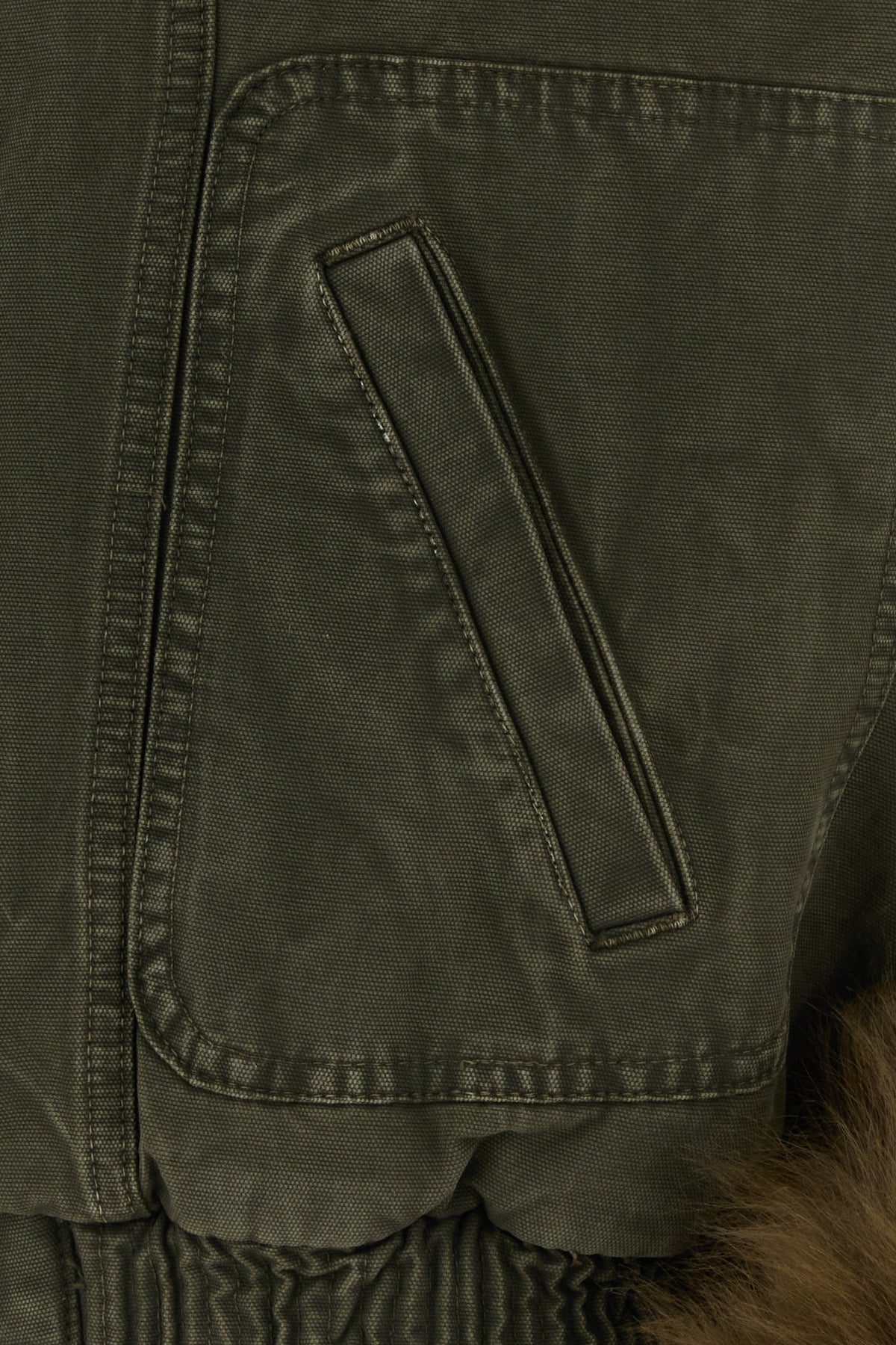 Bomber jacket realized in stonewashed pure cotton enriched by detachable fur inserts on the hood and on the cuffs.