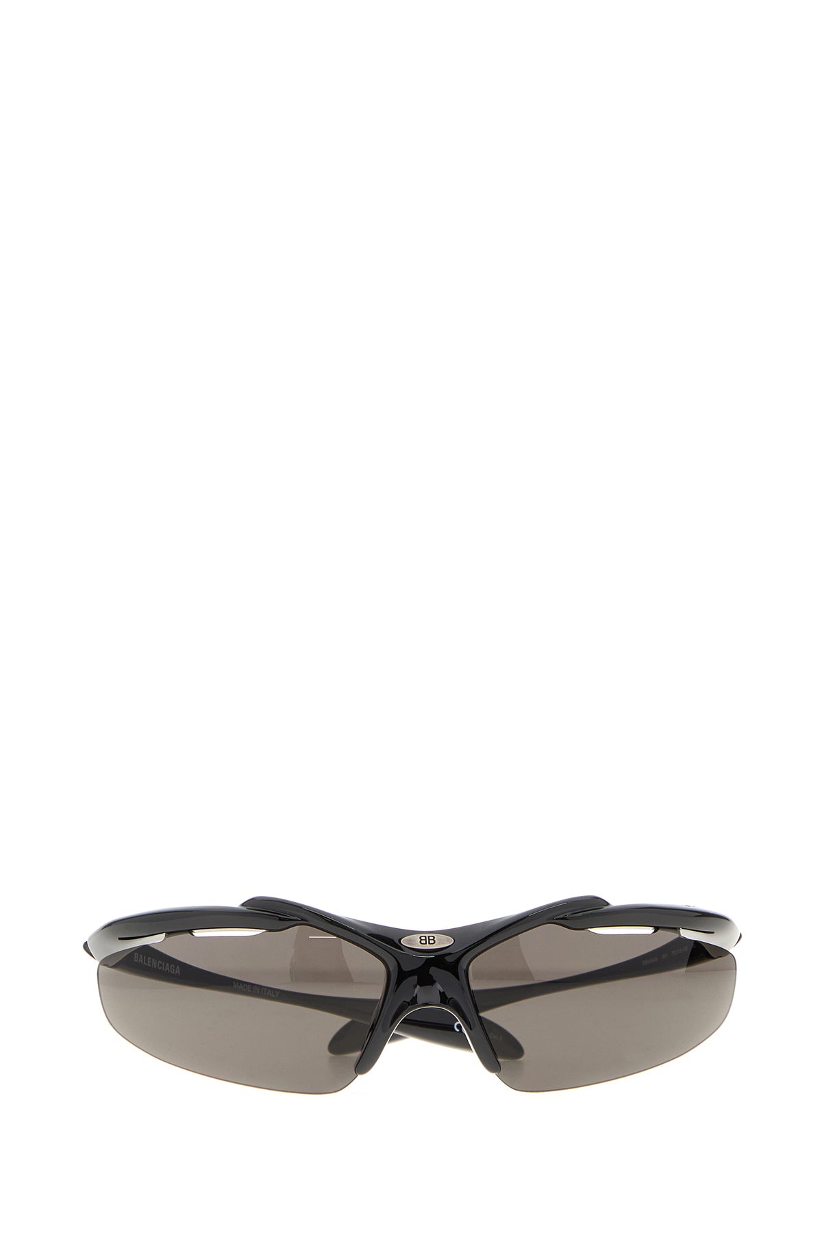 Mask-shaped sunglasses realized in acetate characterized by embossed logo on the arms and logoed metal detail at the top.