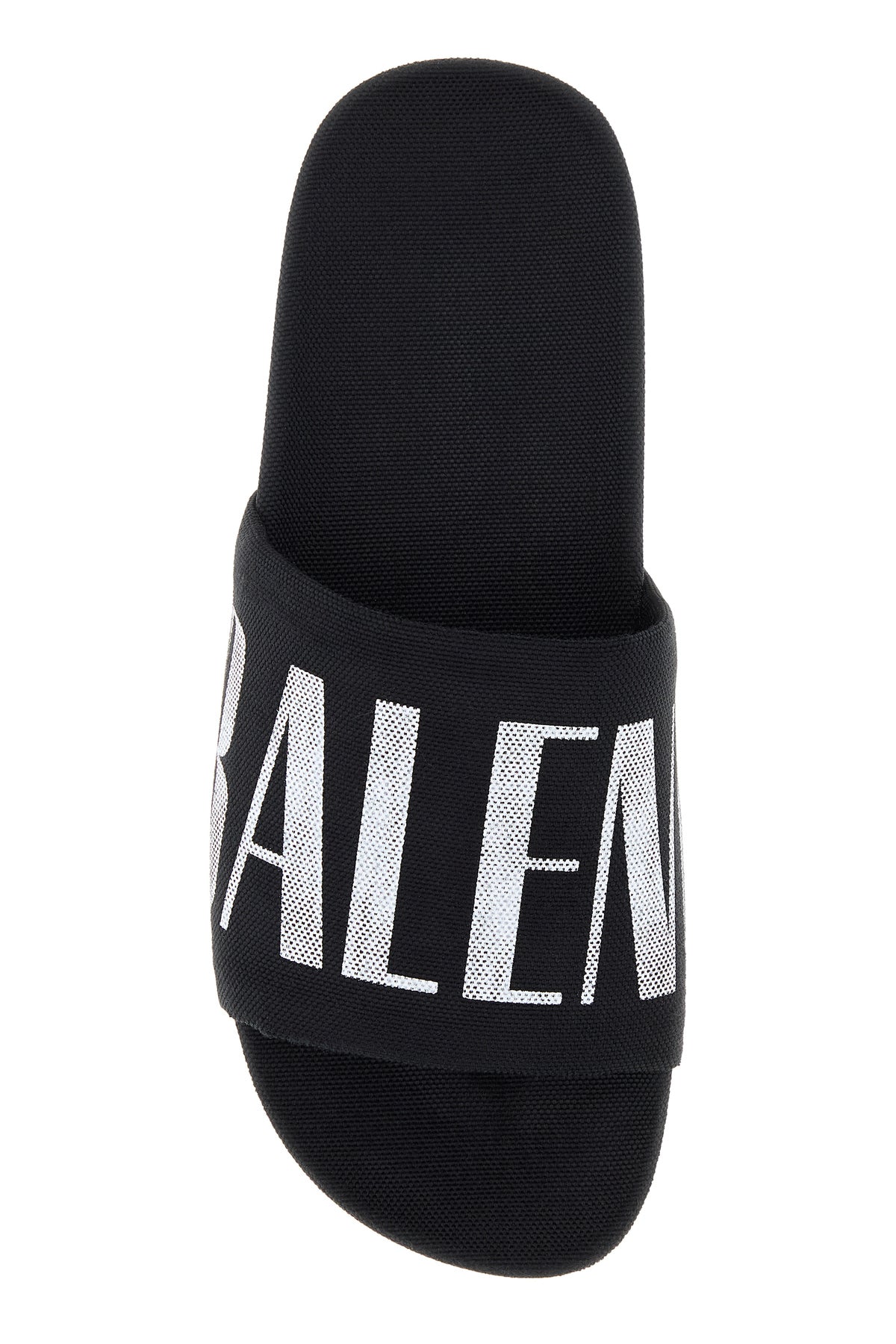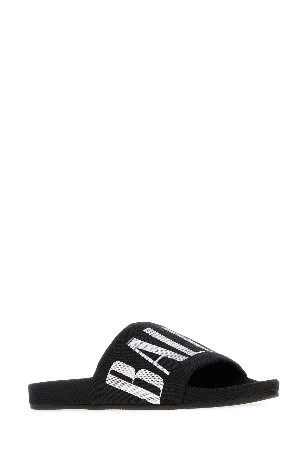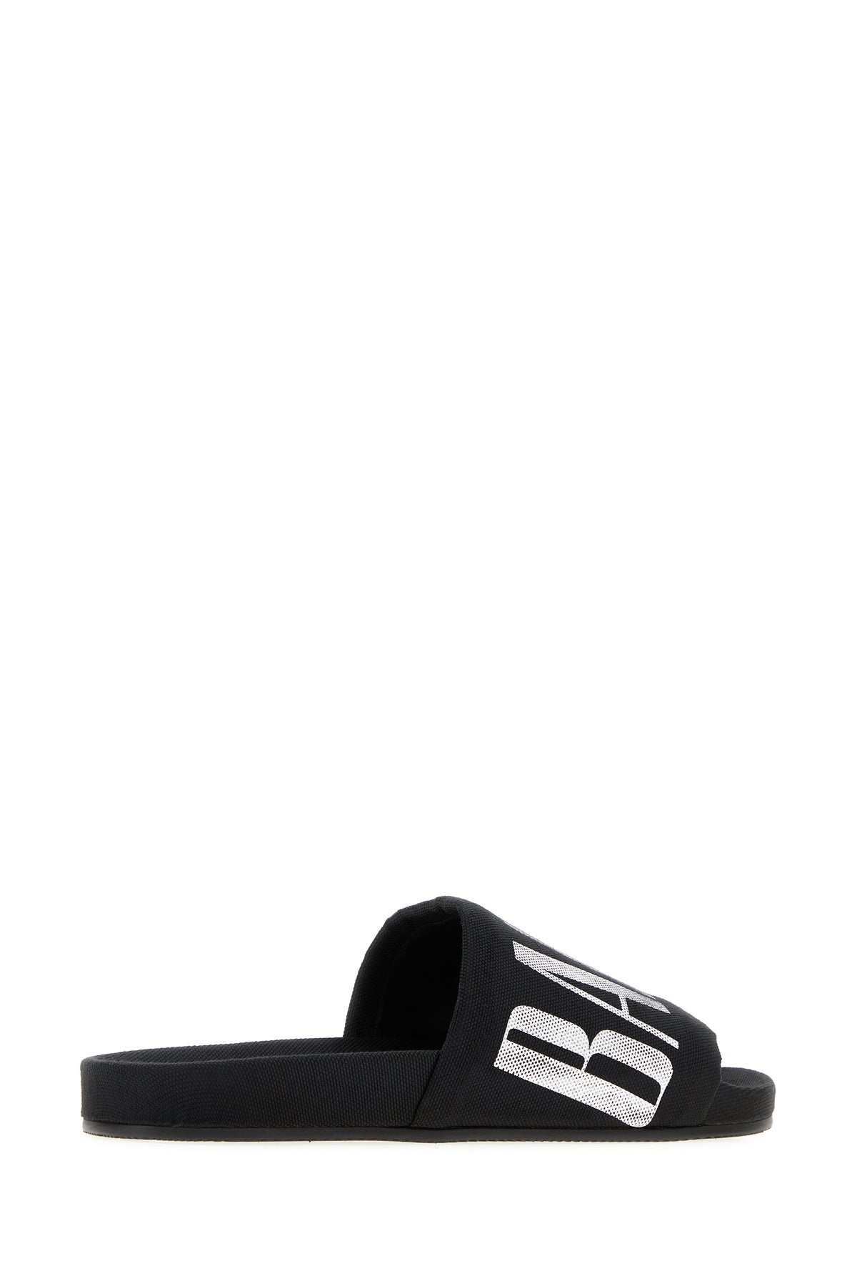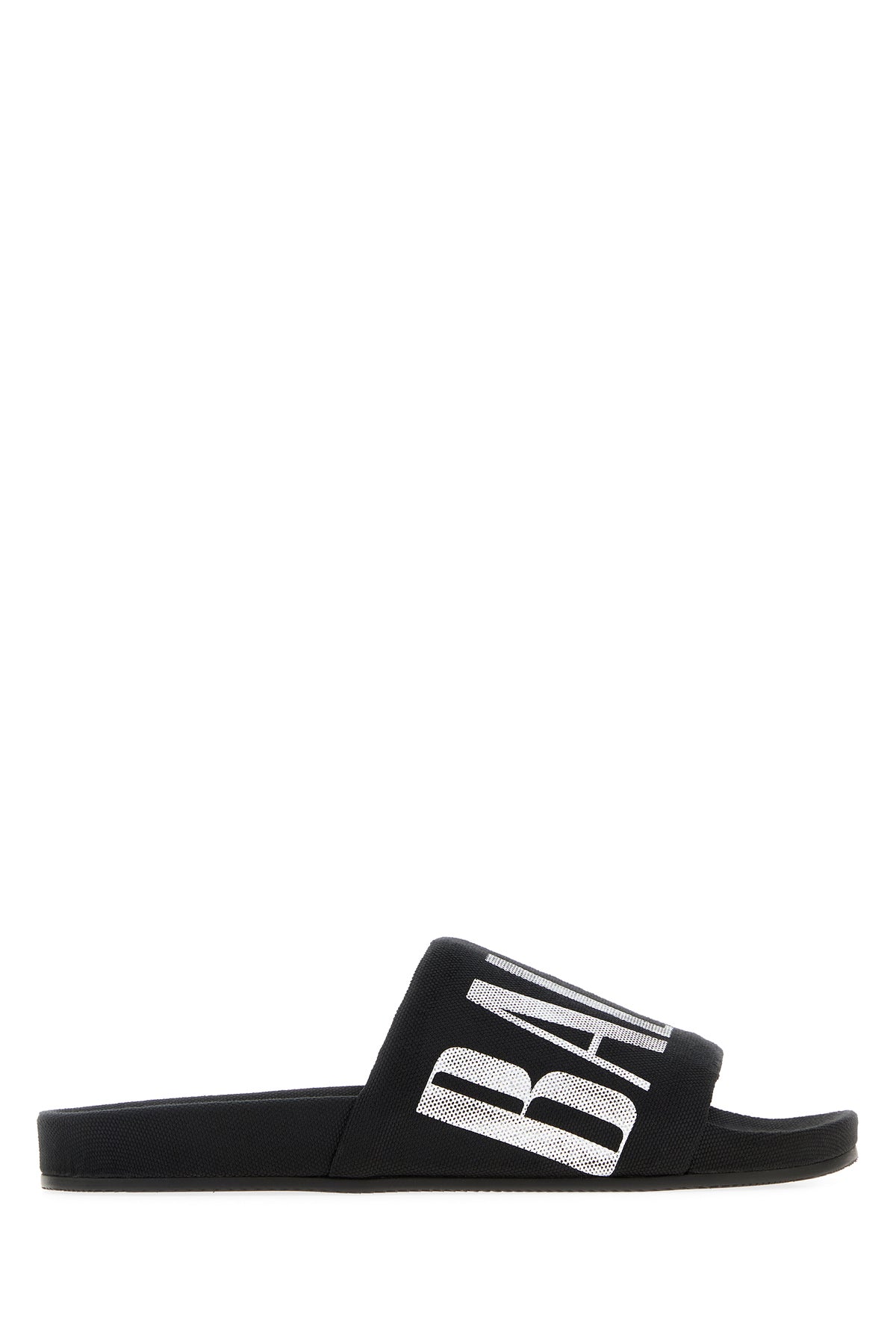 Slippers realized in canvas characterized by contrasting logoed print at the front.