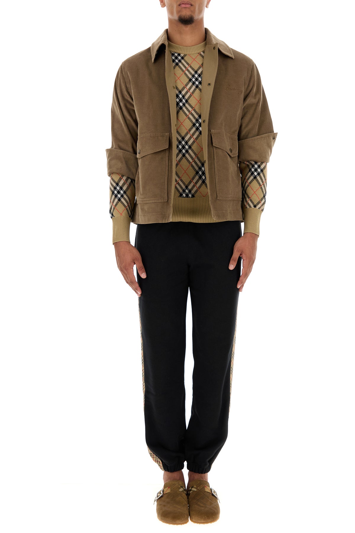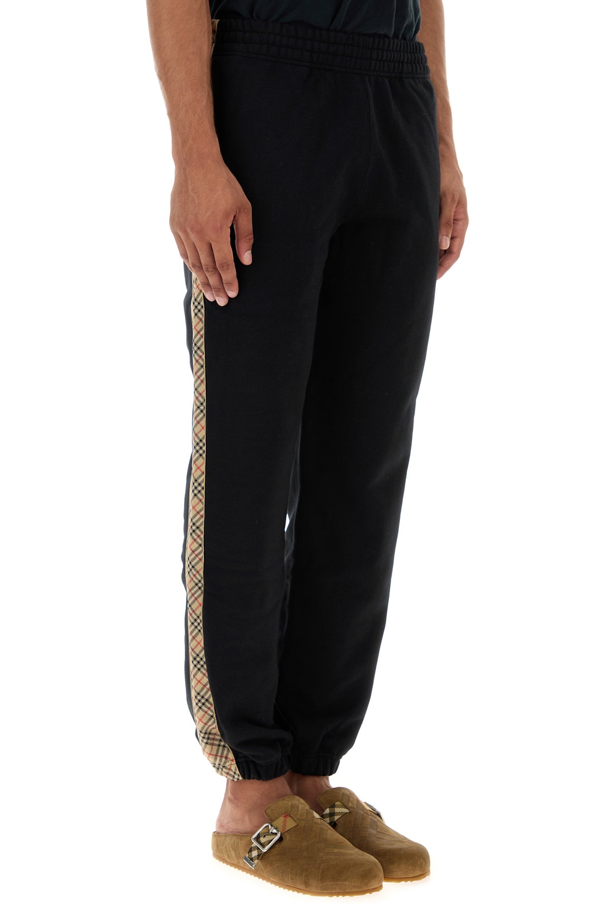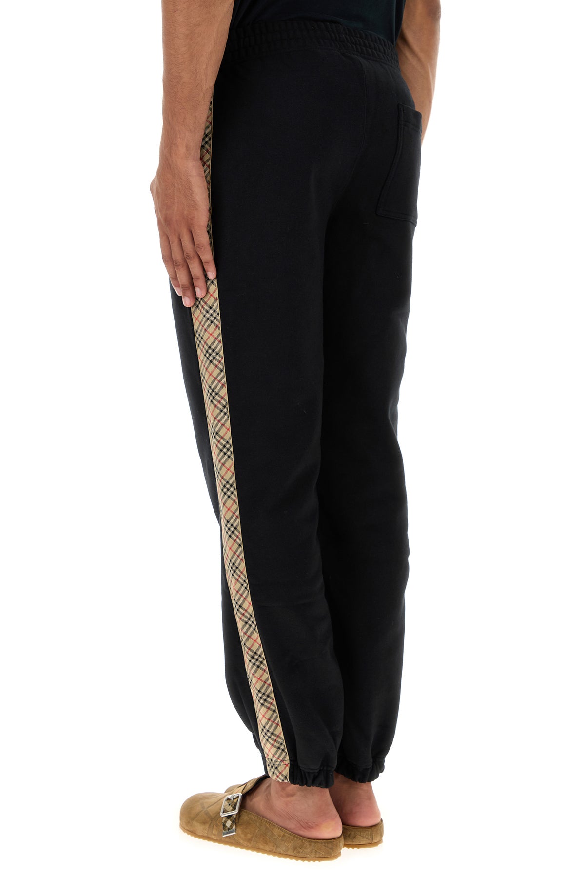 Joggers realized in pure cotton enriched by inserts with Burberry Check embroidery on the sides.