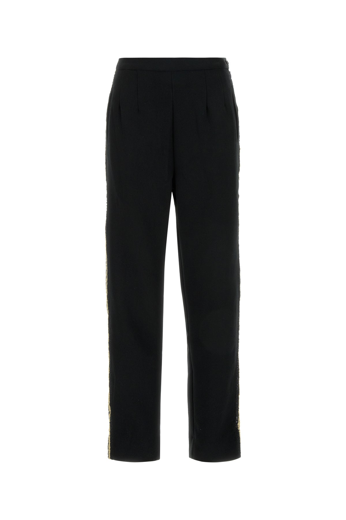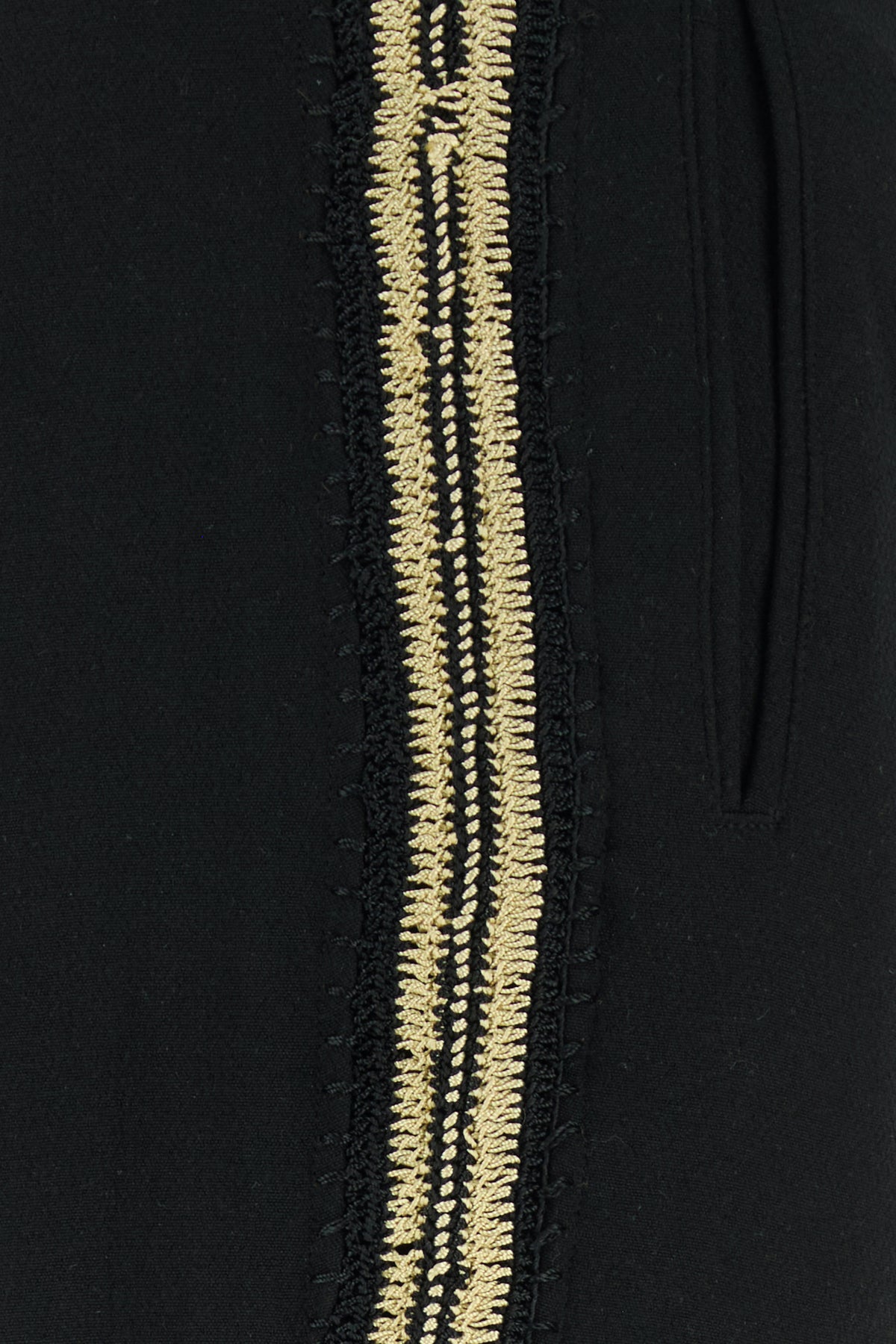 Pant realized in crepe characterized by peculiar embroideries on the sides.