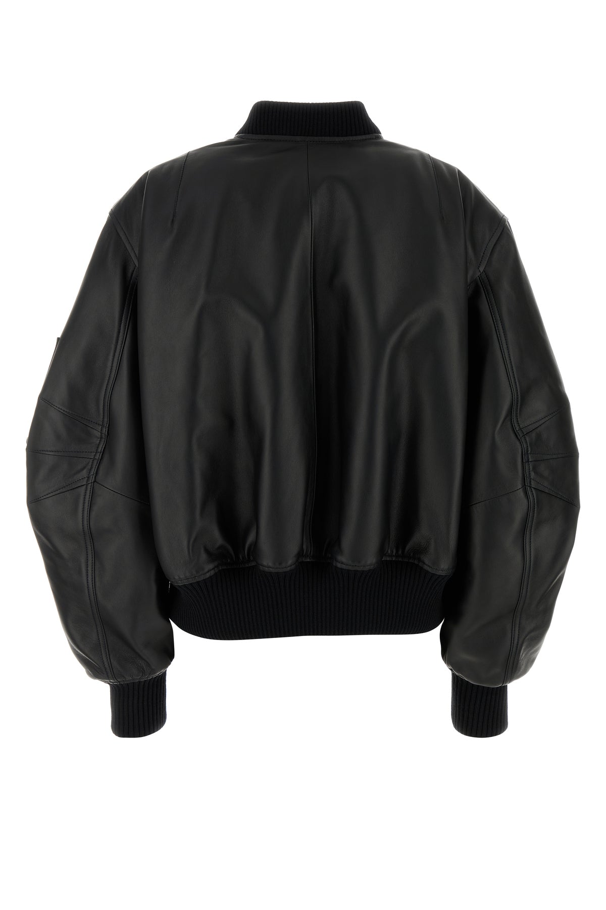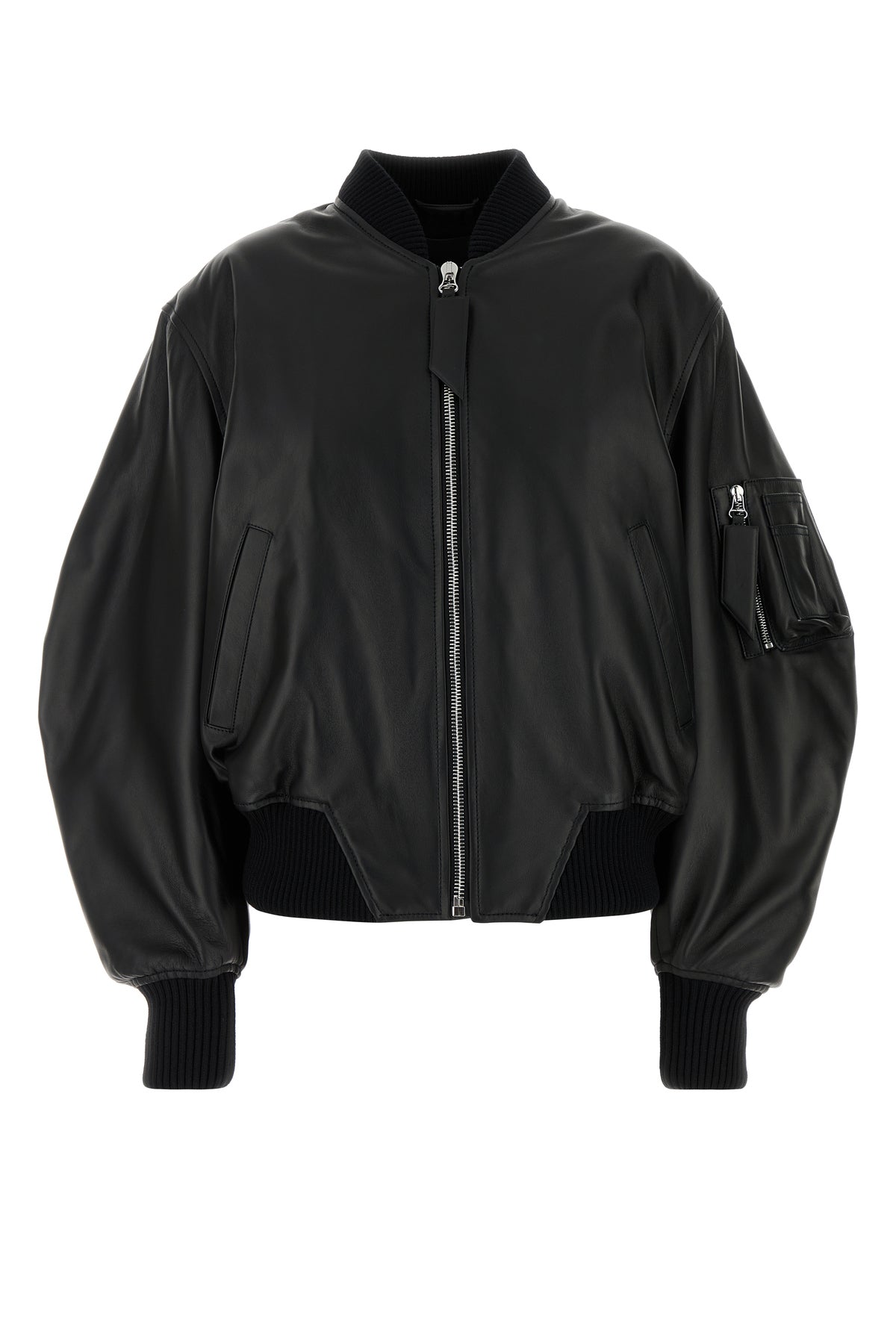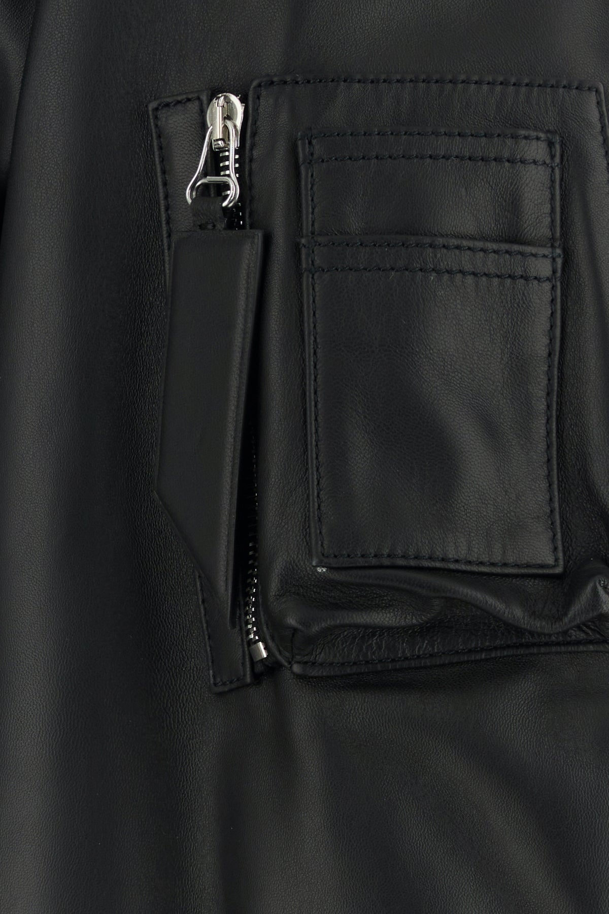 Bomber jacket realized in slightly pebble lamb leather characterized by ribbed crew-neck, cuffs and hemline.