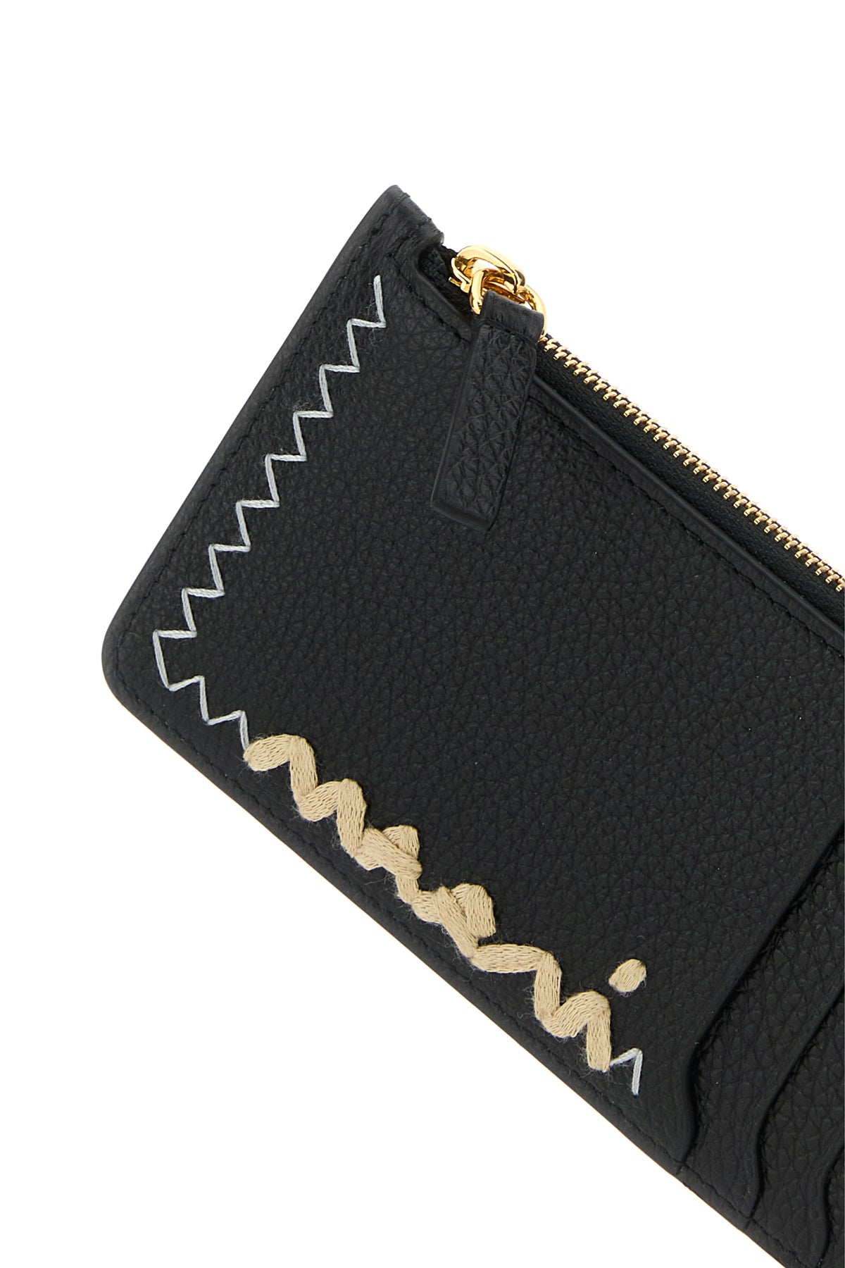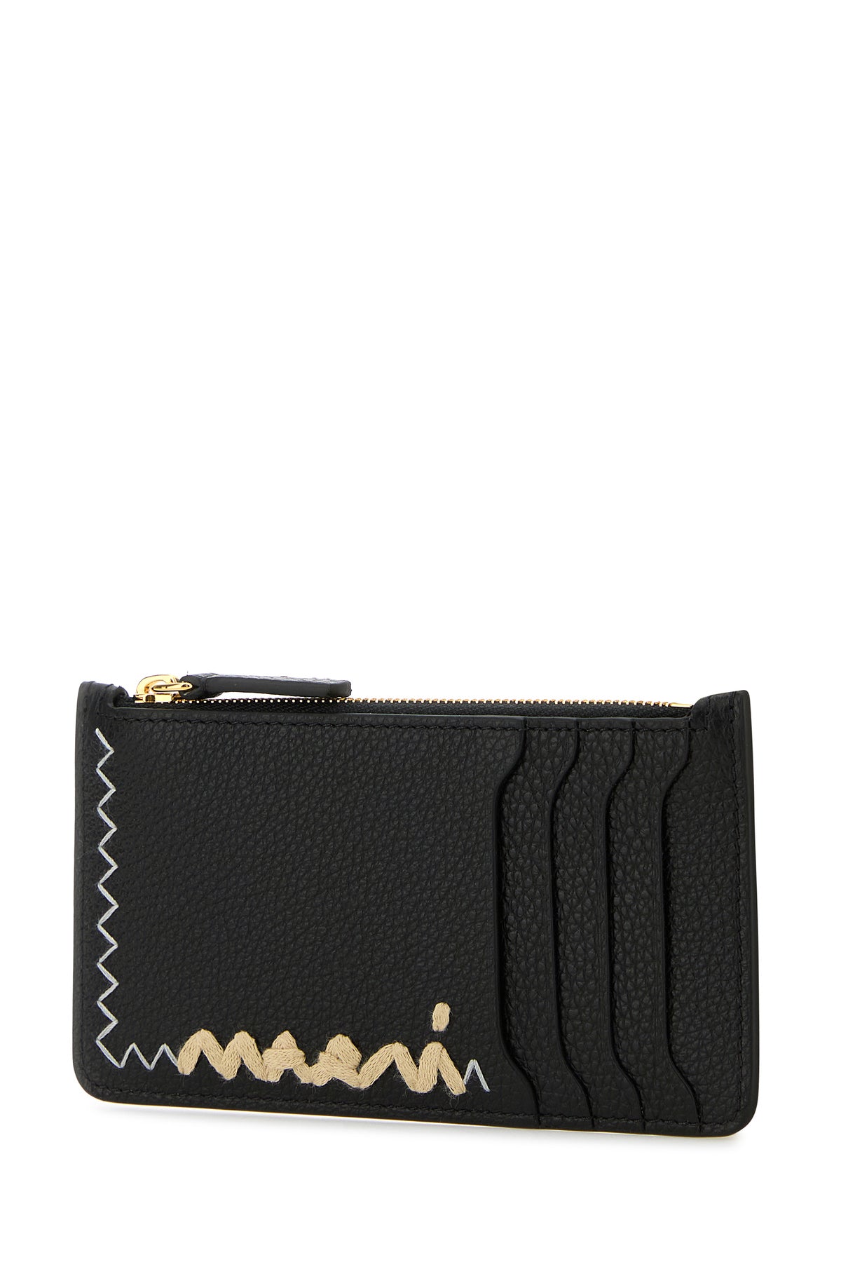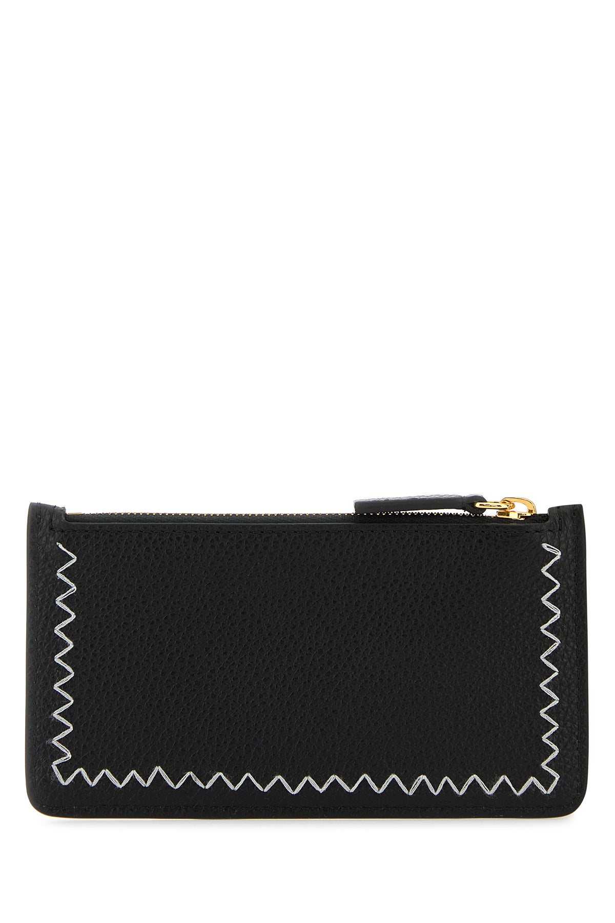 Card holder realized in pebble calf leather characterized by logoed embroidery at the front and contrasting stitchings on the trimmings.