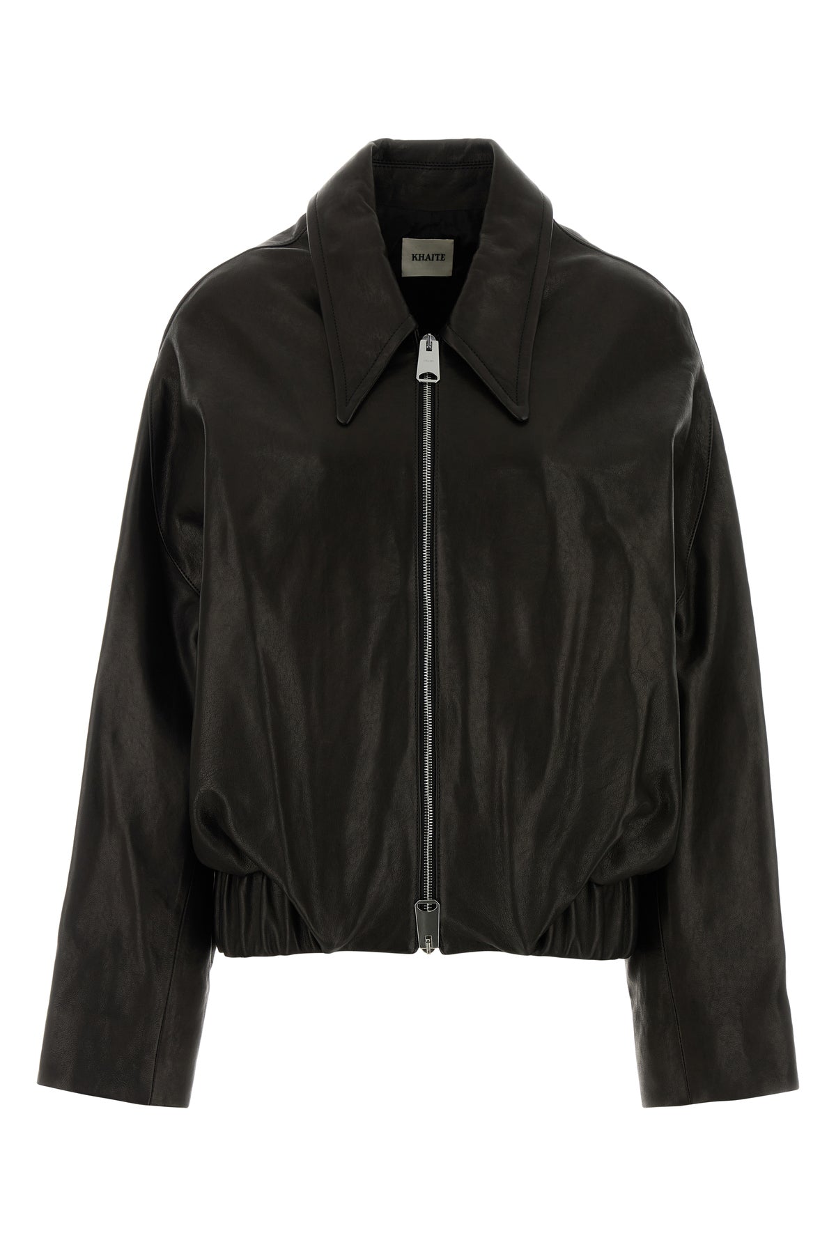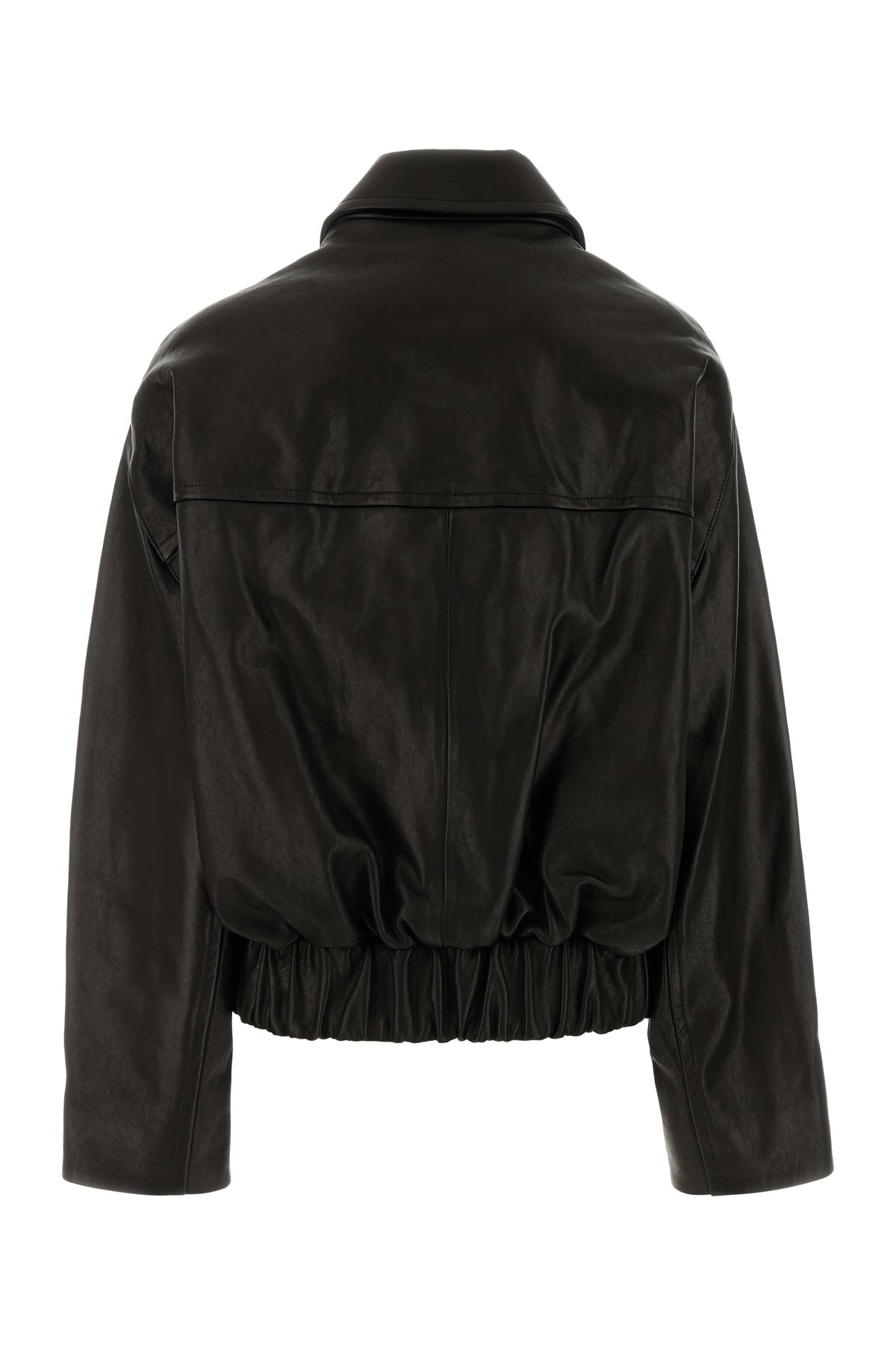 Oversize jacket realized in lamb leather.