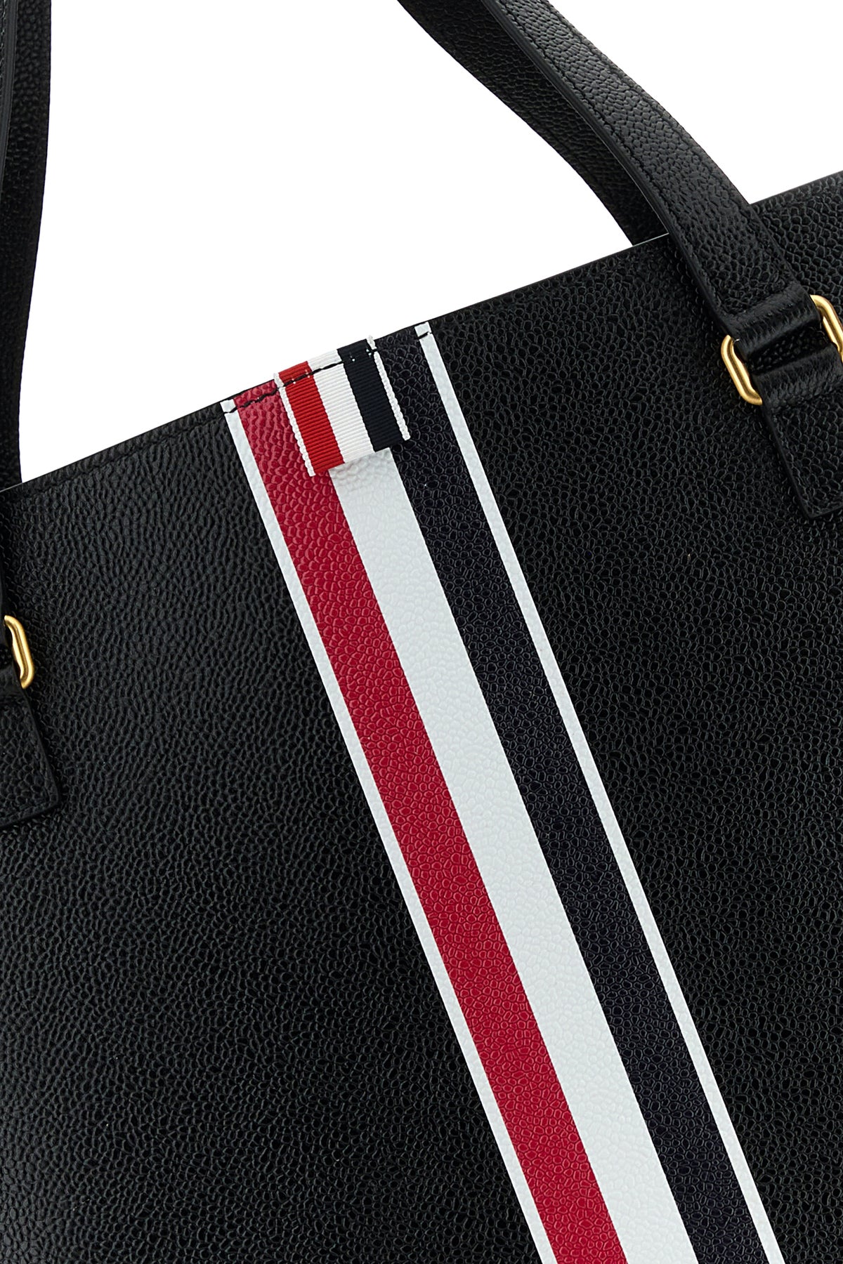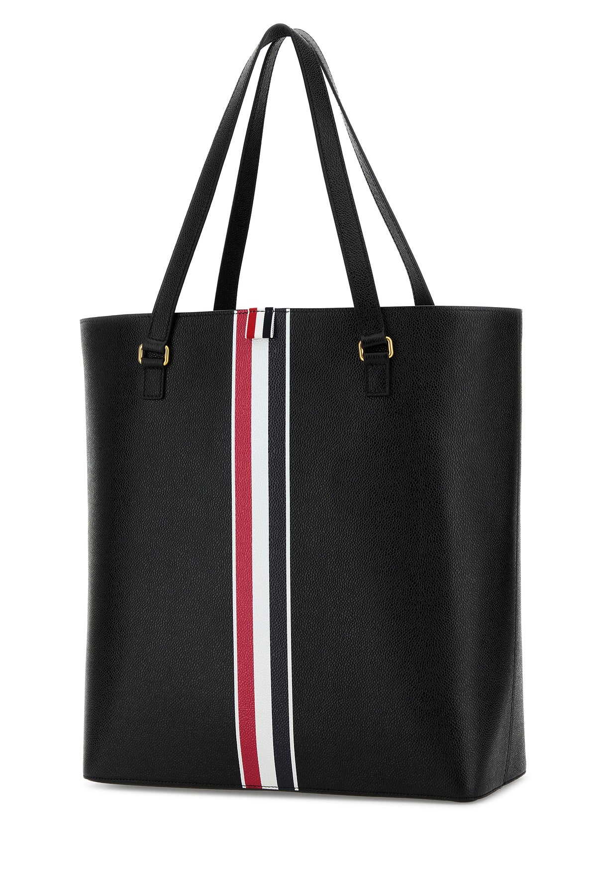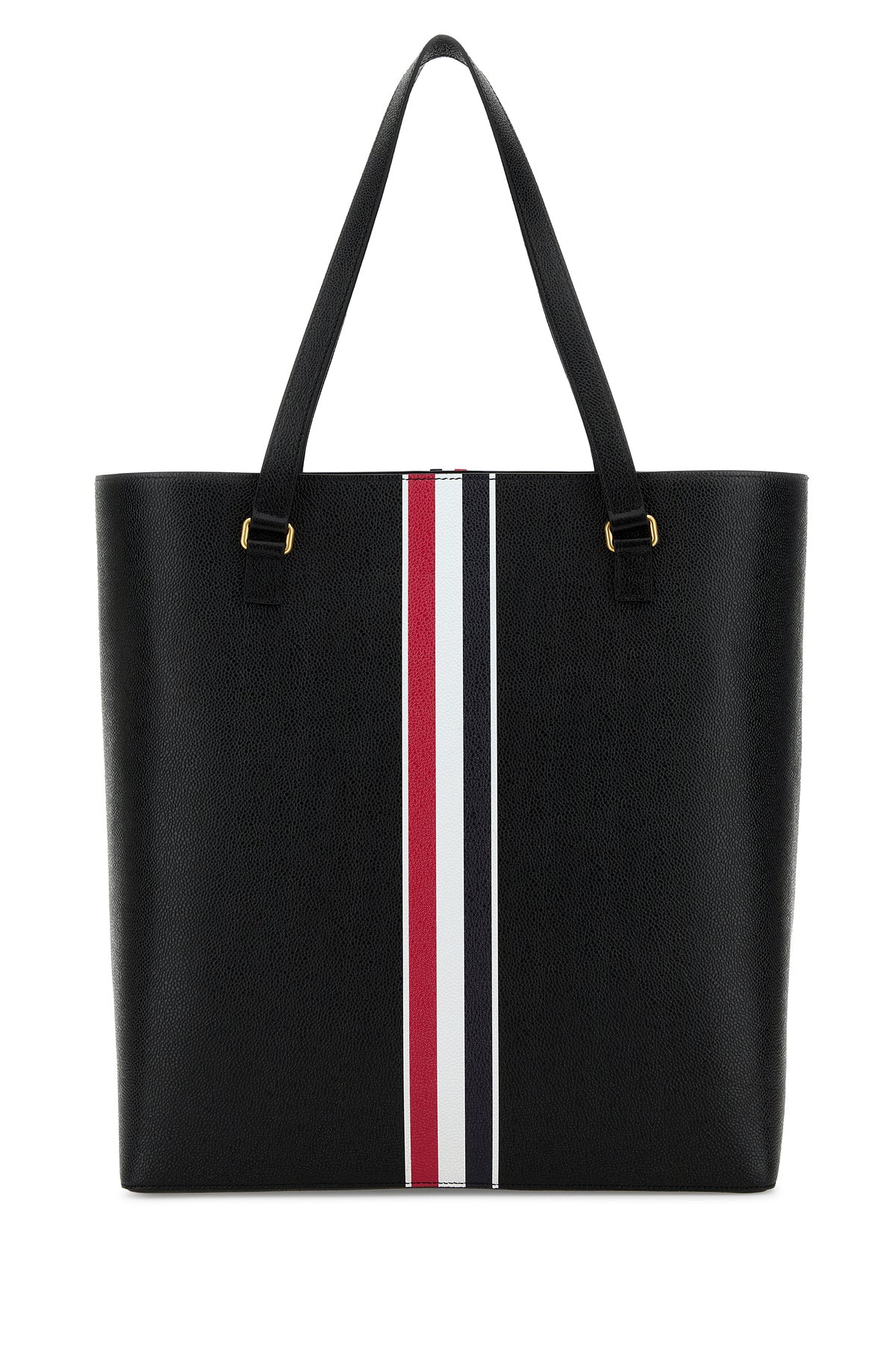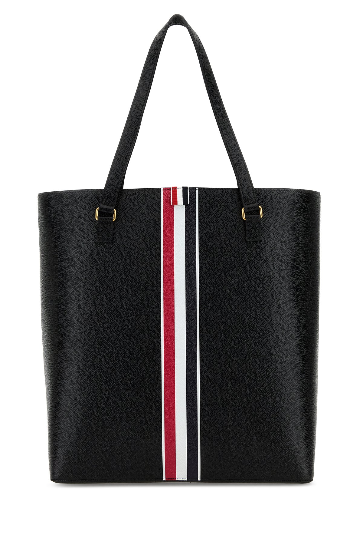 Shopping bag realized in pebble leather characterized by logoed print at the front and at the back enriched by iconic tricolor label at the front.