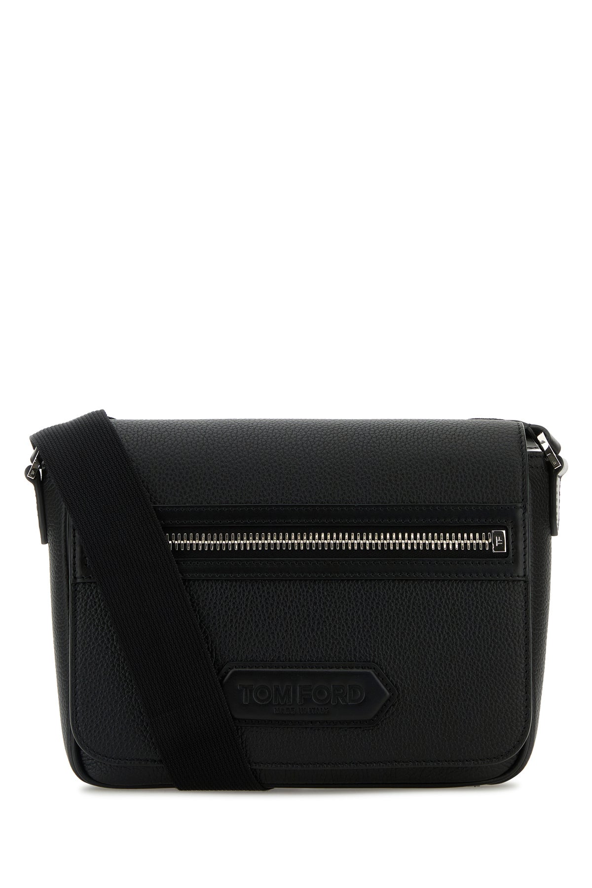 Crossbody bag realized in grained calf leather enriched by tonal leather patch at the front.