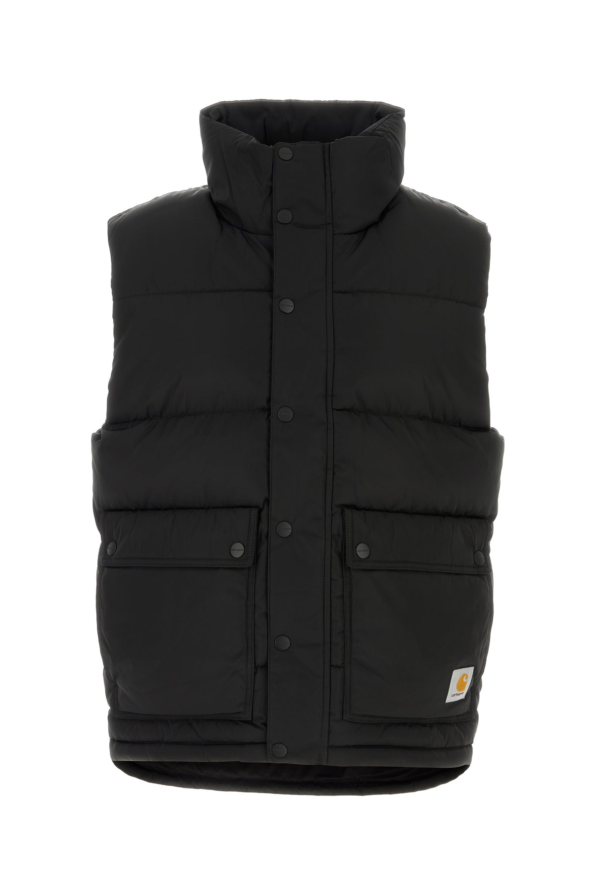 Vest realized in quilted nylon enriched by contrasting logoed label on the hemline.