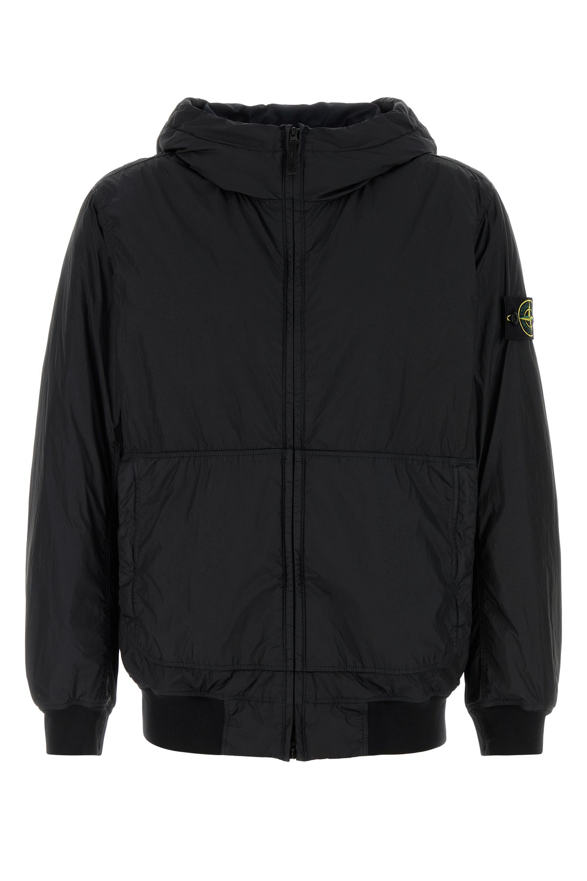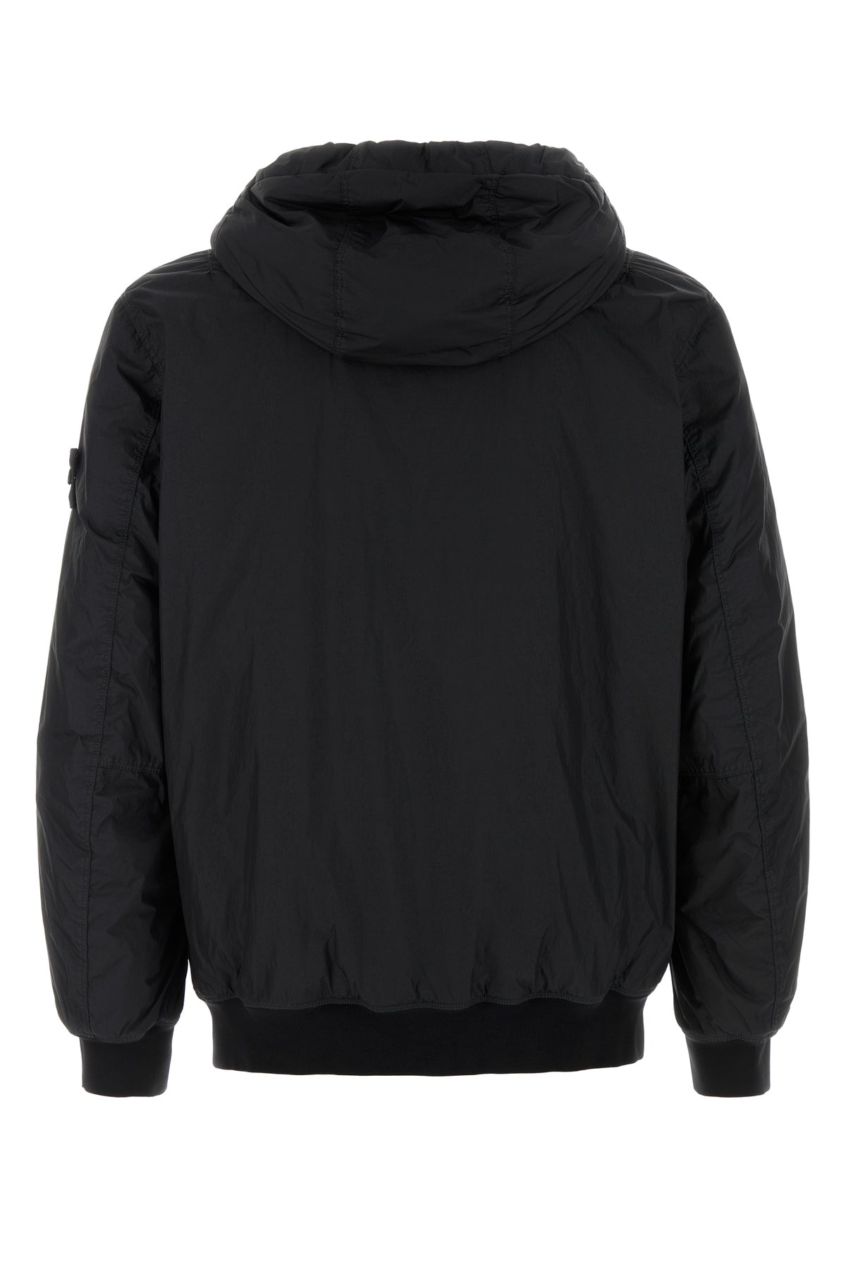 Black nylon padded bomber jacket
