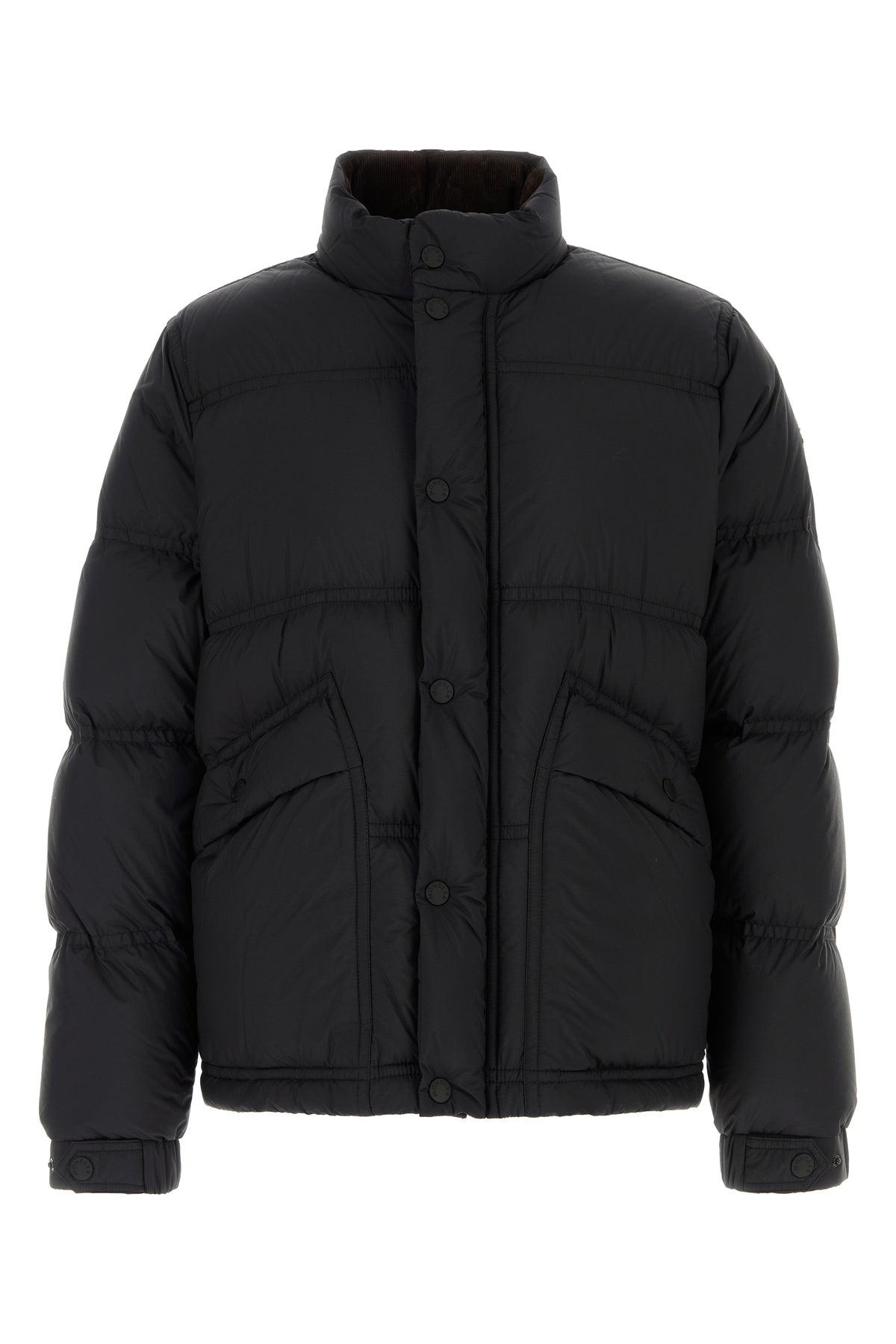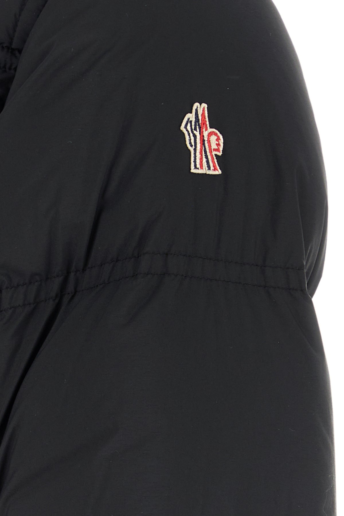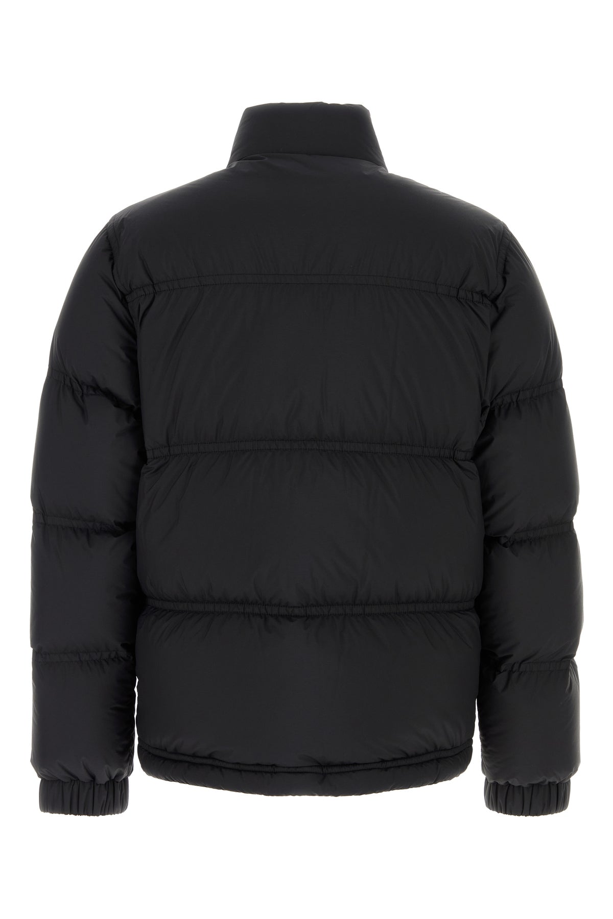 Down jacket realized in nylon enriched by contrasting logoed patch on the sleeve.