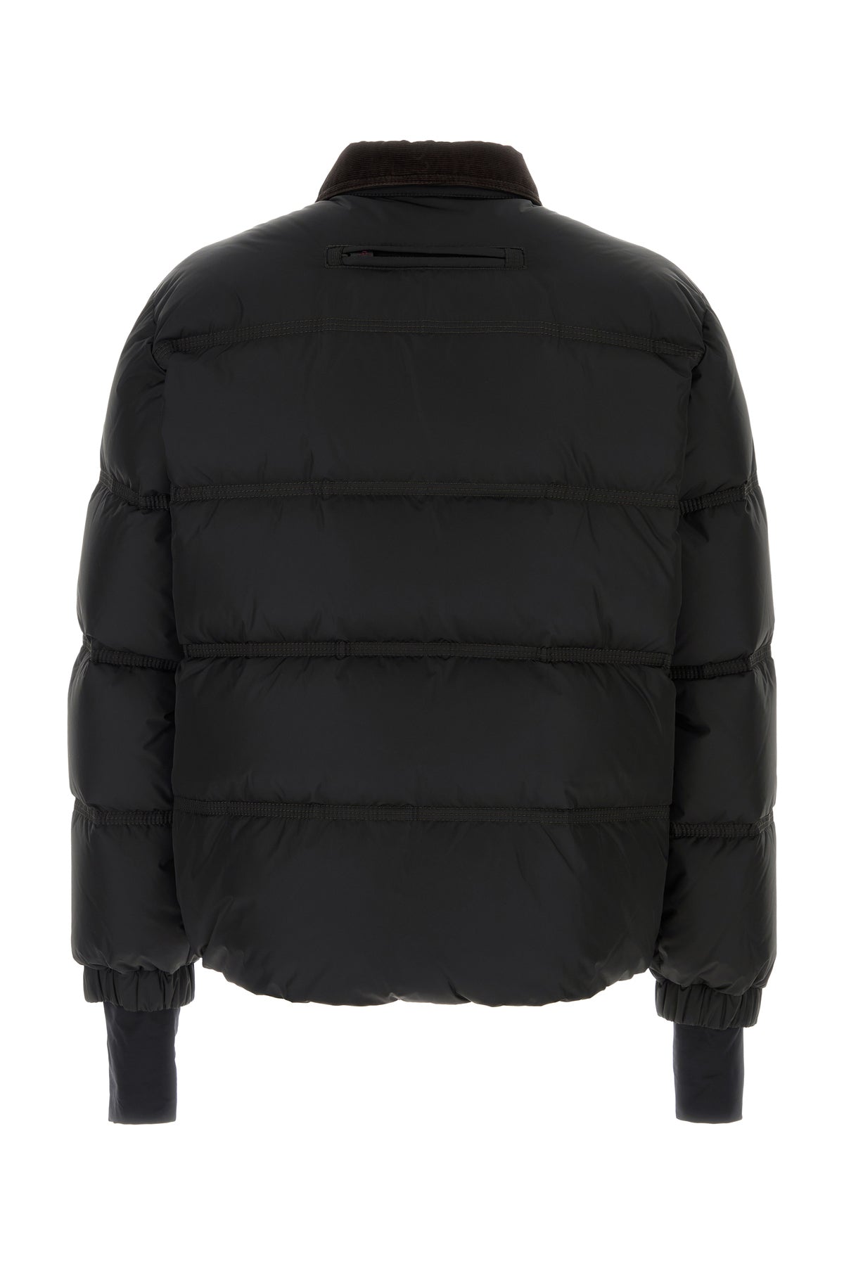 Down jacket realized in quilted nylon enriched by contrasting logoed patch on the sleeve.