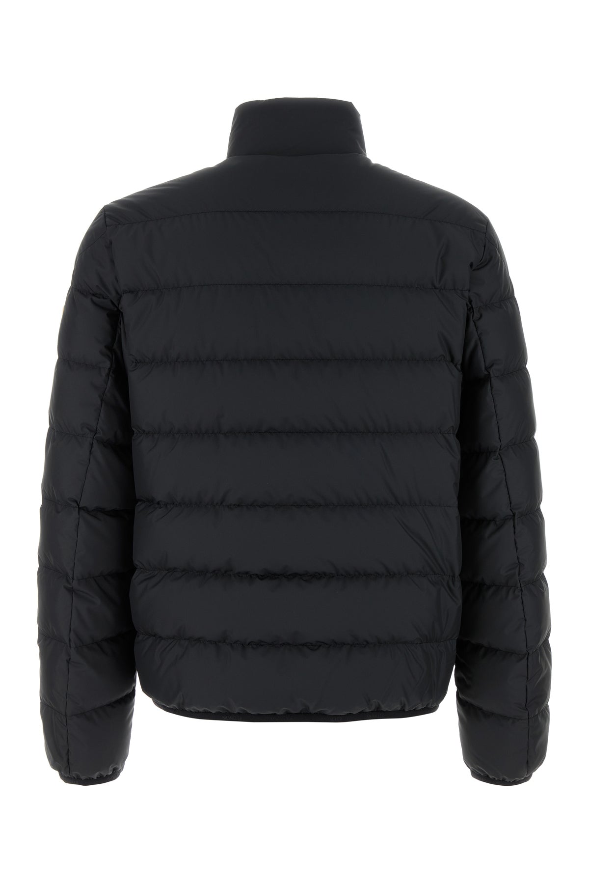 Down jacket realized in quilted polyester enriched by contrasting logoed patch on the sleeve.