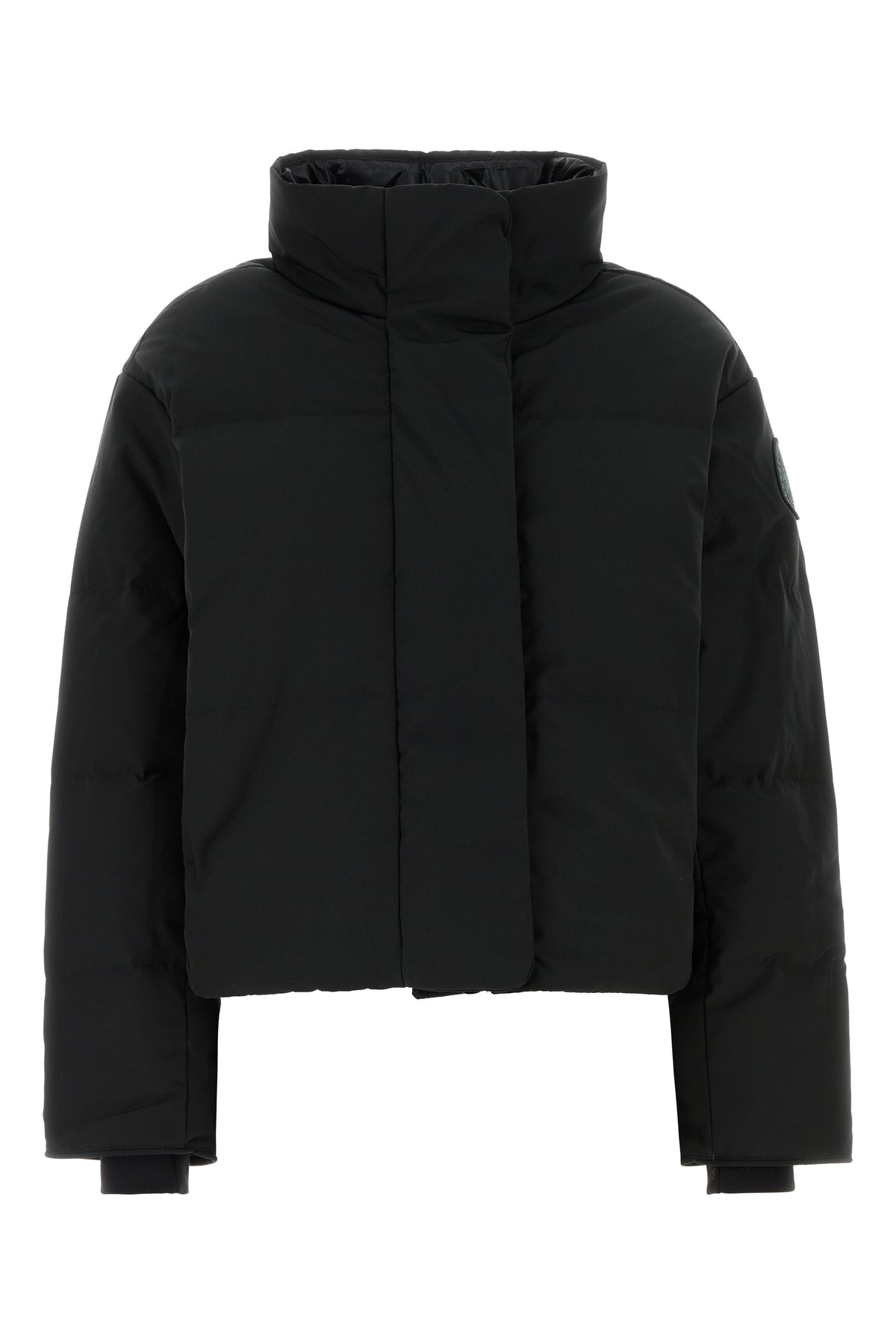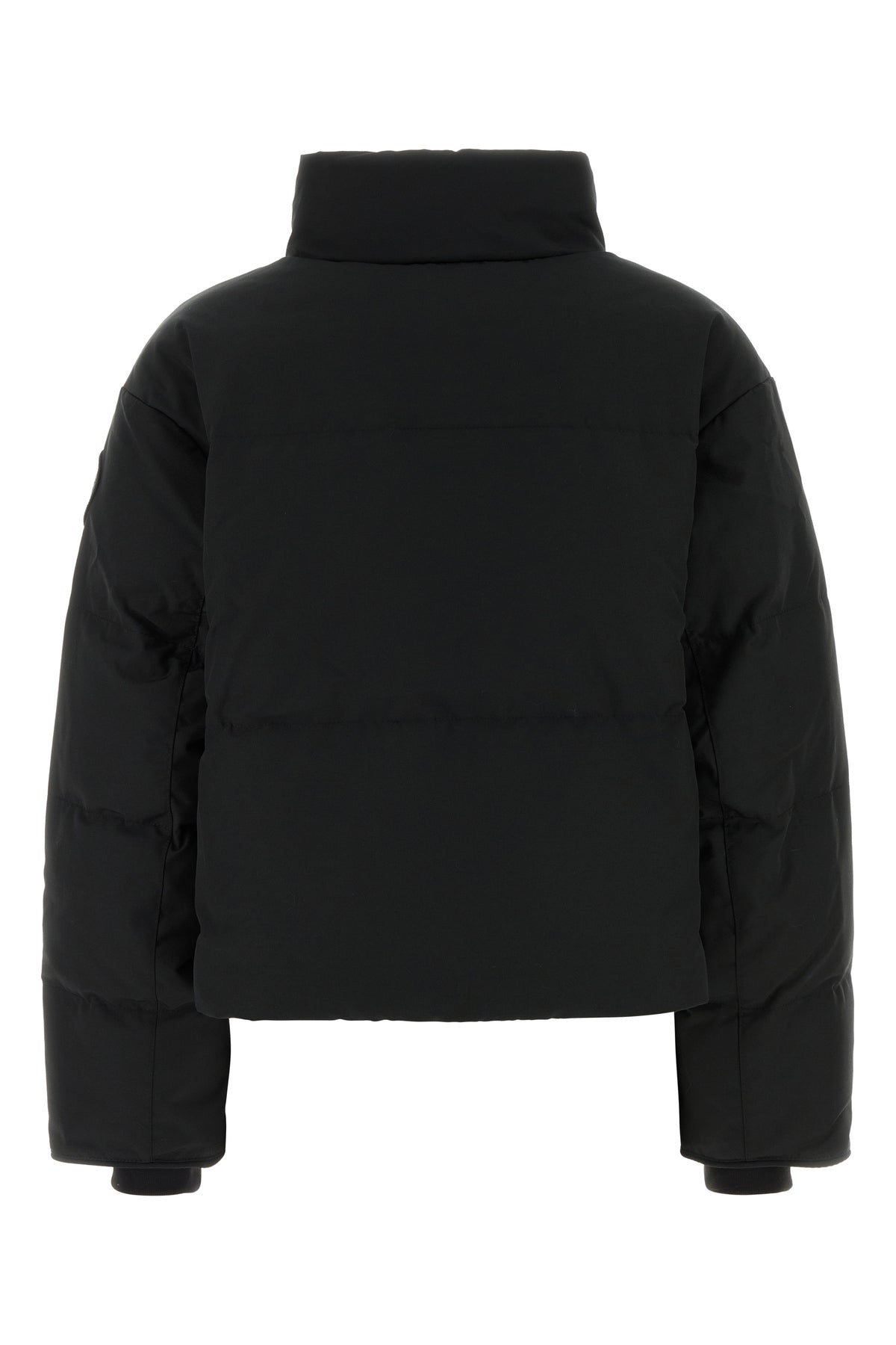 Cropped-cut down jacket realized in quilted polyester and cotton enriched by tonal logoed patch on the sleeve.