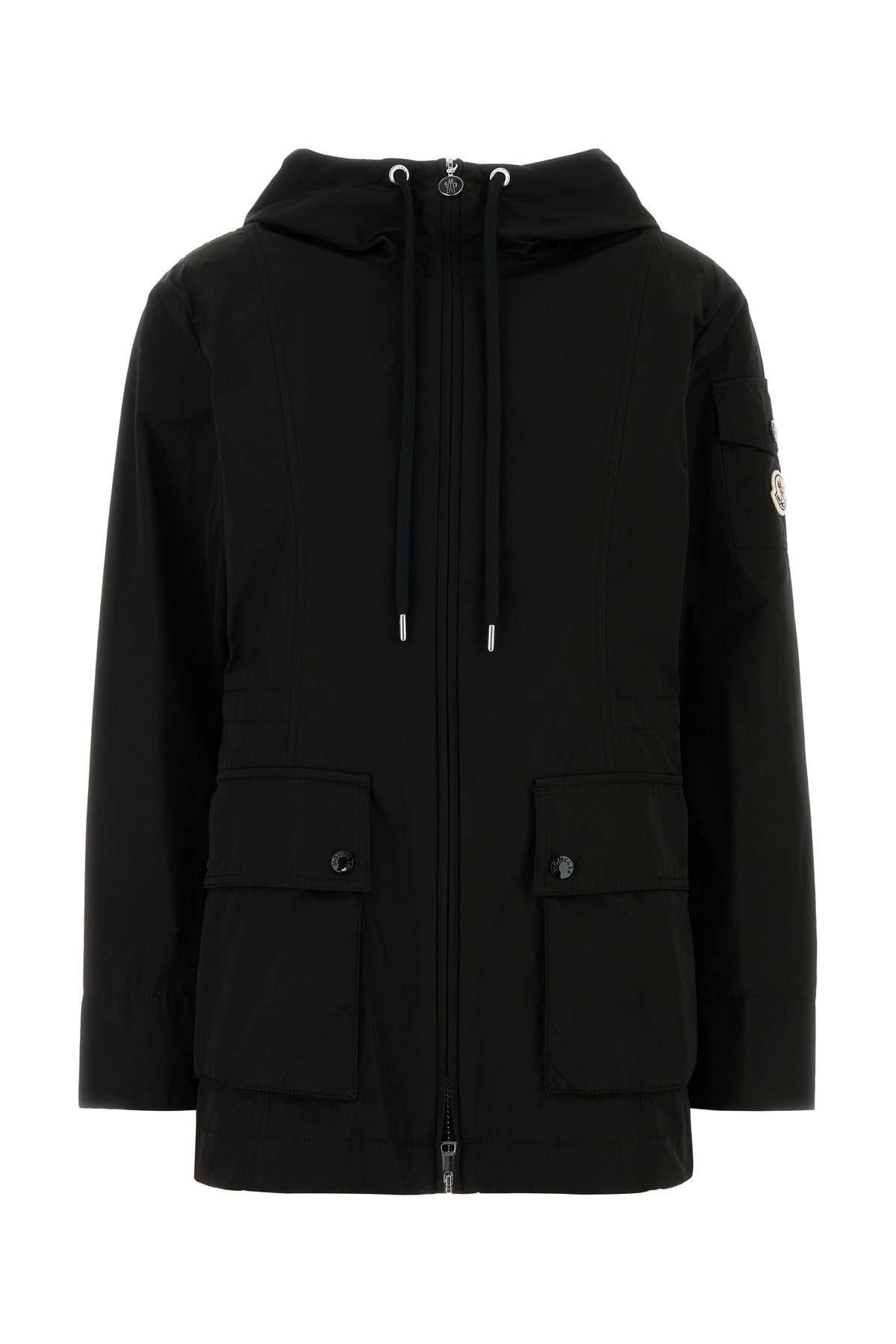 Windbreaker realized in polyester blend enriched by contrasting logoed patch on the sleeve.