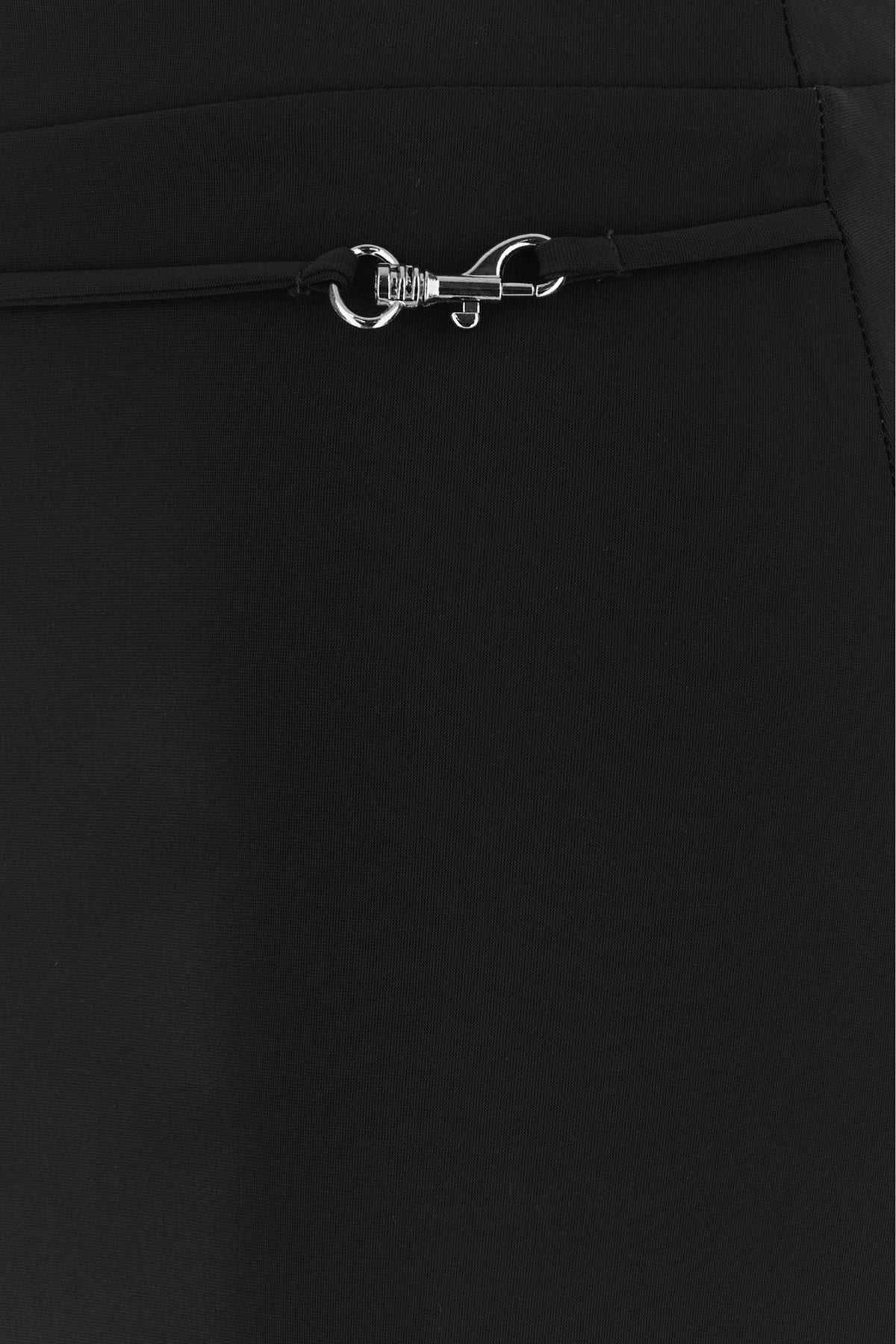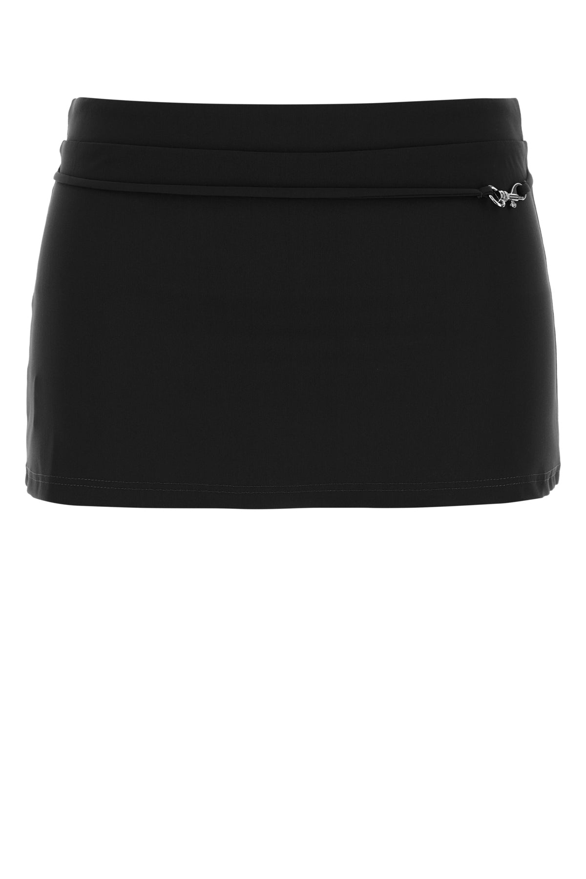 Mini skirt realized in stretch nylon enriched by strap with metal hook at the front.