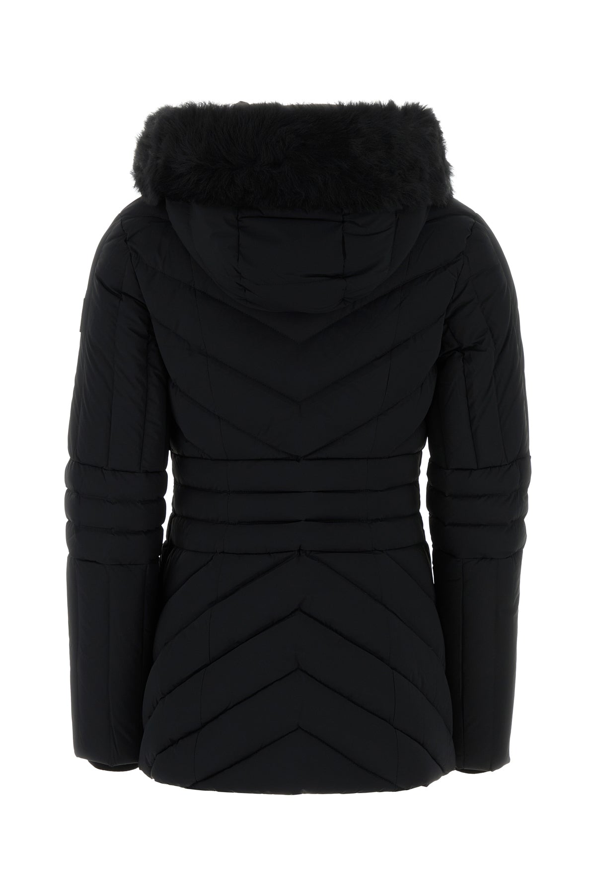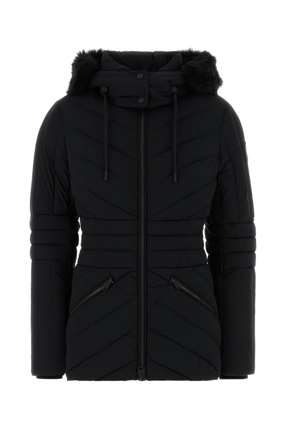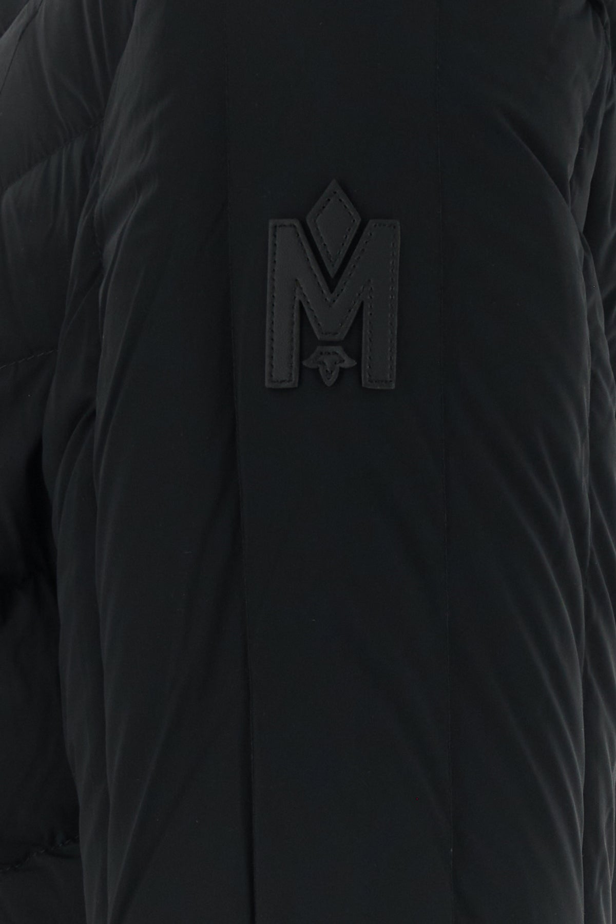 Down jacket realized in quilted stretch nylon enriched by tonal leather logoed patch on the sleeve.