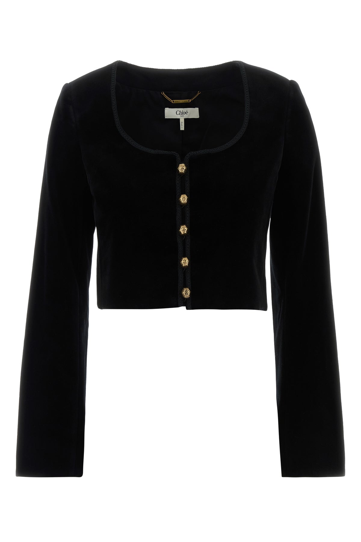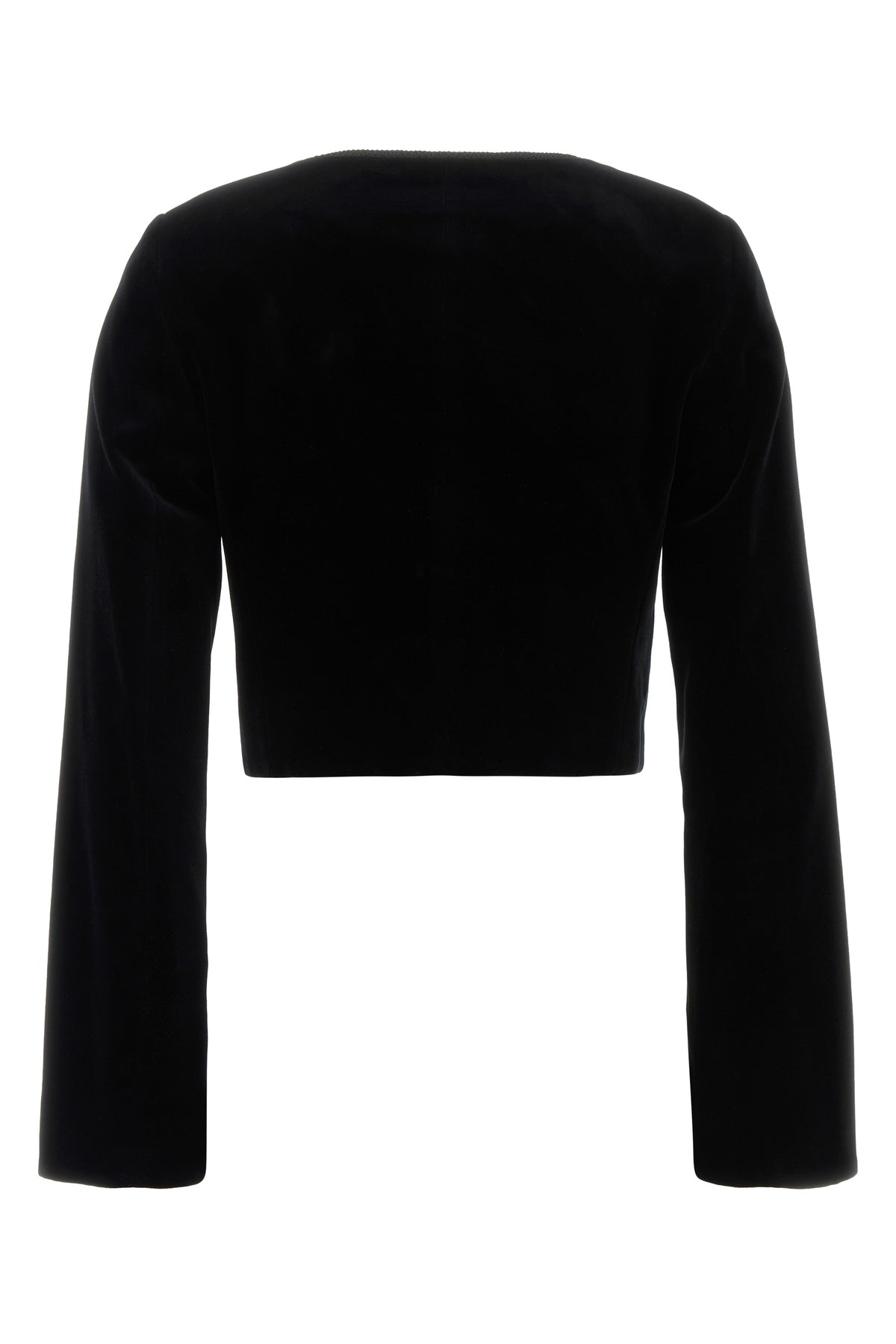 Cropped-cut blazer realized in pure cotton velvet.