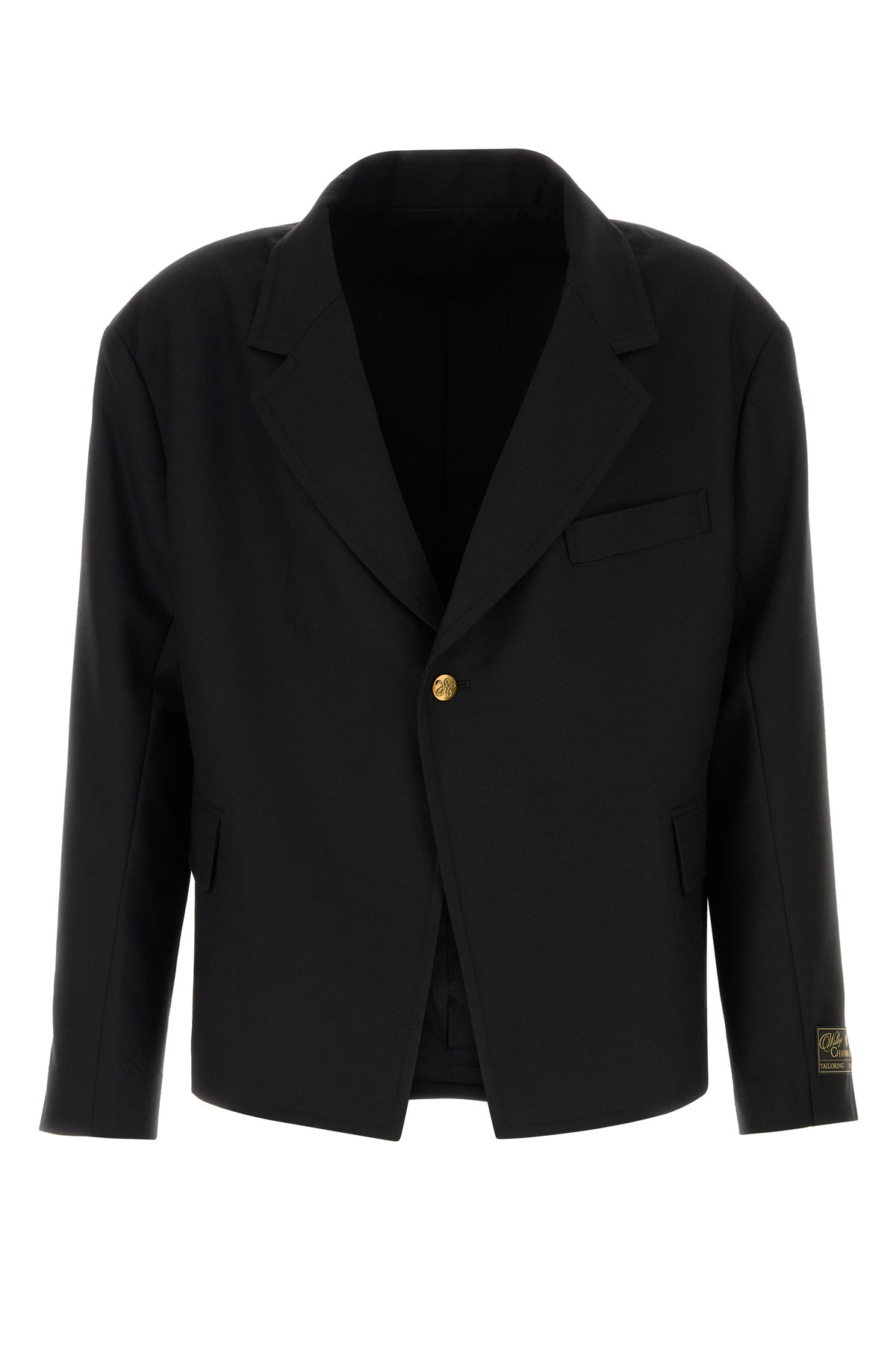 Oversize blazer realized in pure wool enriched by logoed label on the cuff.