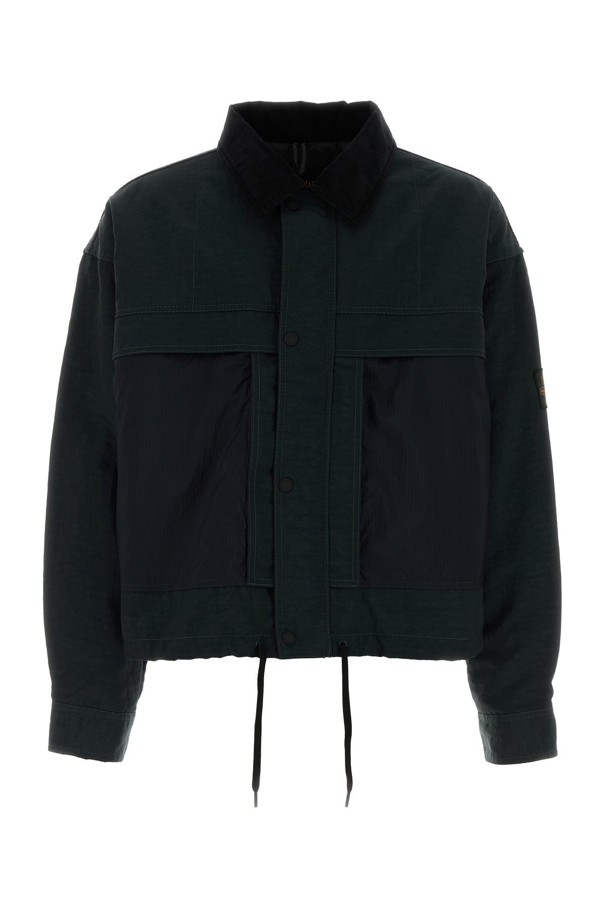 Jacket realized in nylon enriched by logoed label on the sleeve.