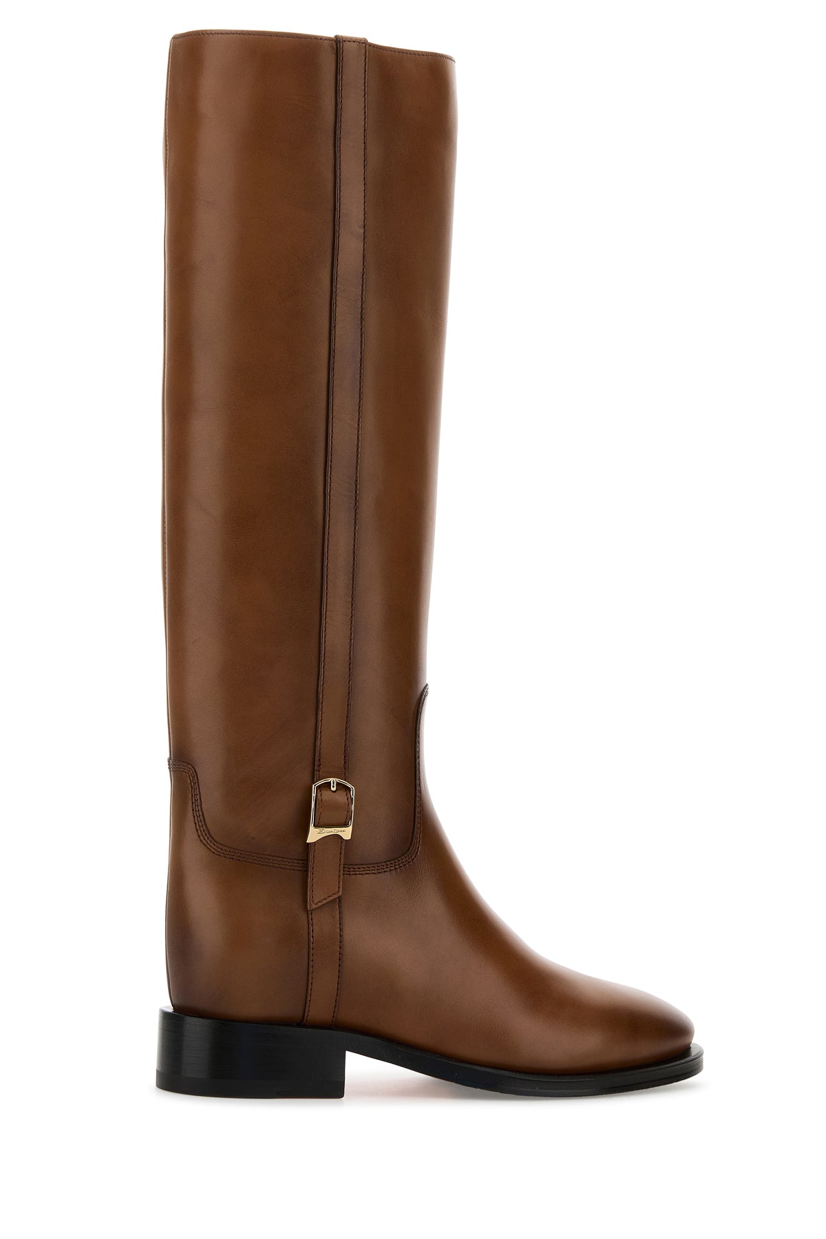 Boots realized in vintage-effect leather enriched by decorative strap with metal logoed buckle on the side.