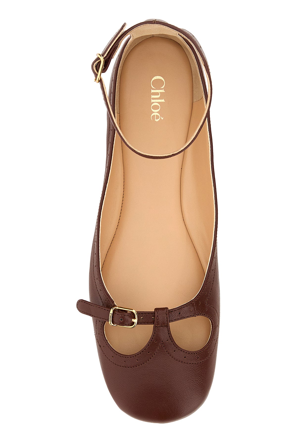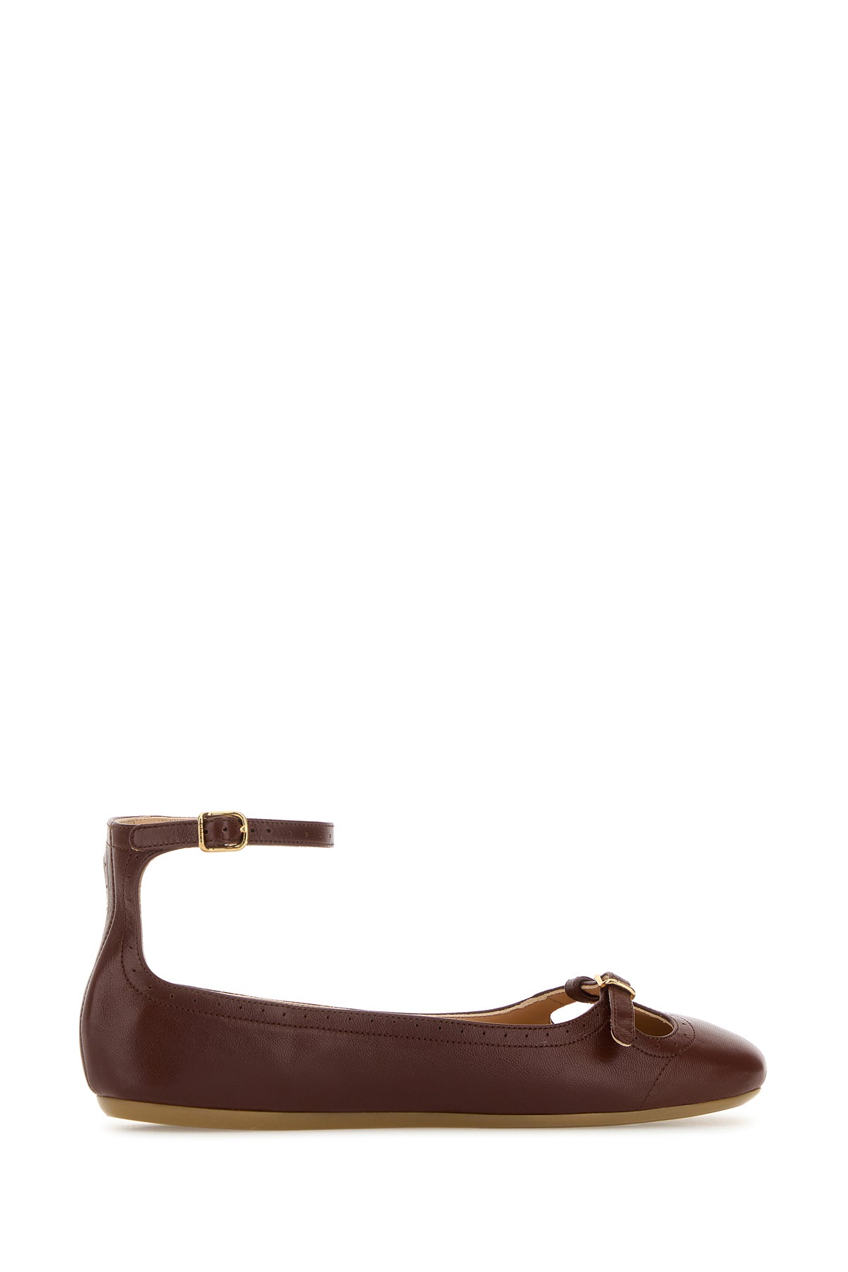 Ballerinas realized in slightly pebble leather enriched by cut-out details with strap at the front.