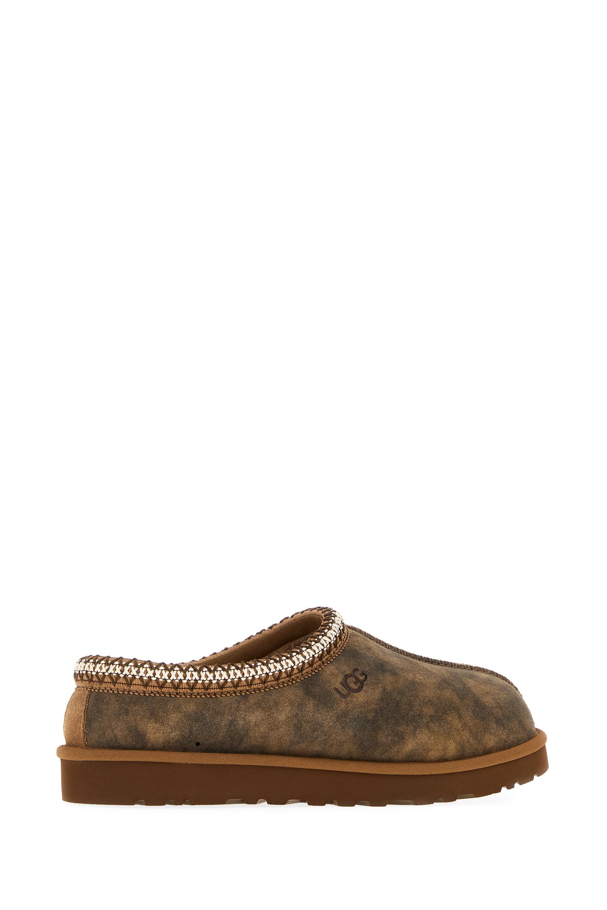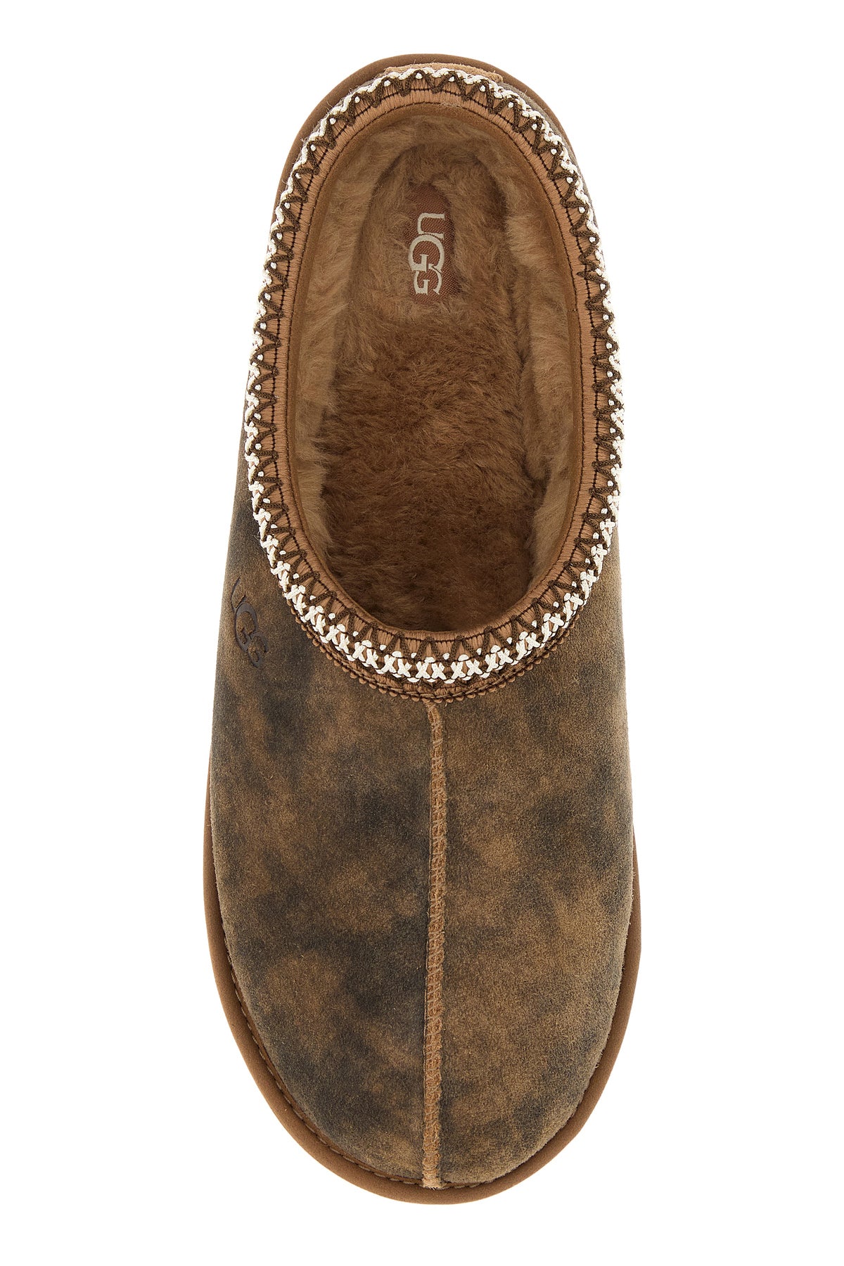 Slippers realized in vintage effect suede characterized by contrasting logo at the front enriched by contrasting trimming.