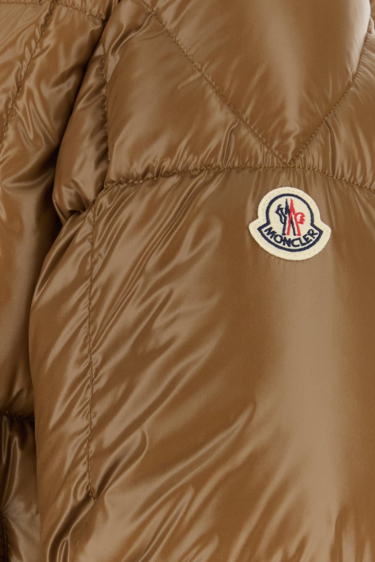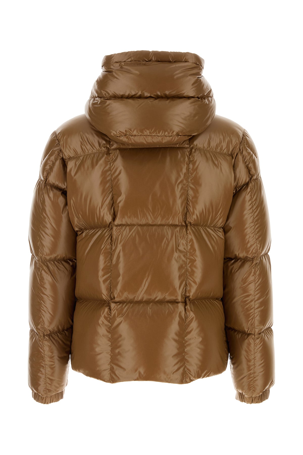 Down jacket realized in quilted nylon enriched by contrasting logoed patch on the sleeve.