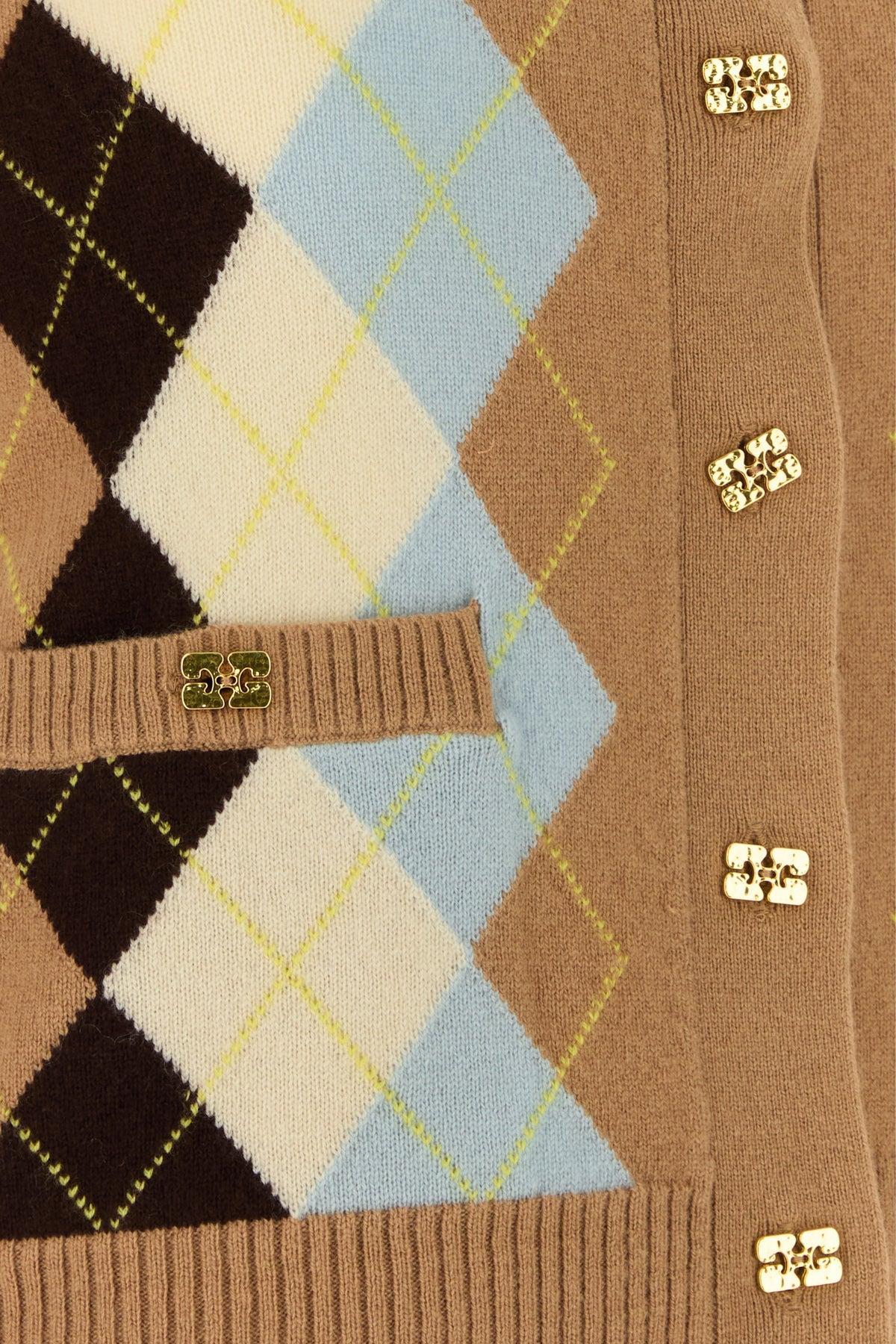 Cardigan realized in wool and cashmere characterized by embroidered logo on the chest and checked embroidery at the front.