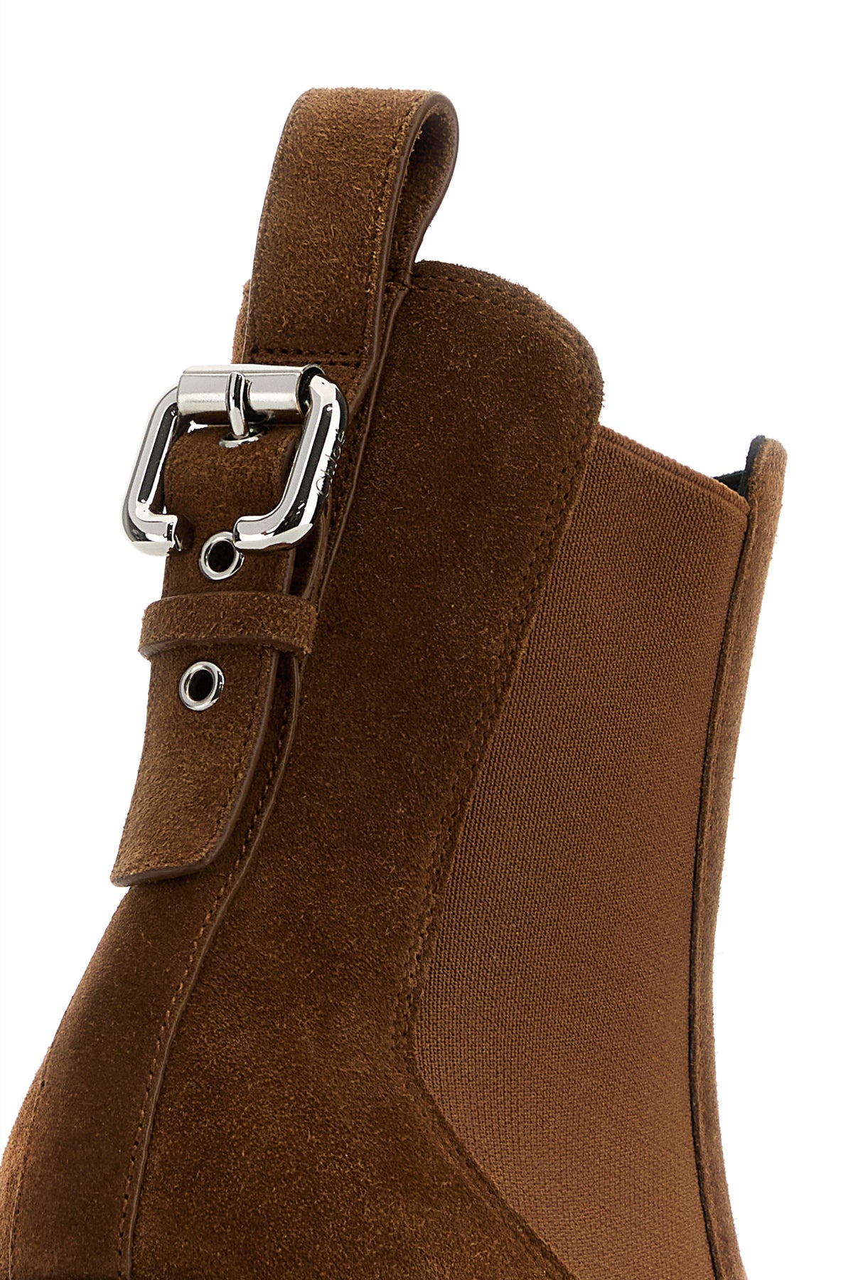 Ankle boots realized in suede characterized by embossed logo on the top enriched by strap at the back.