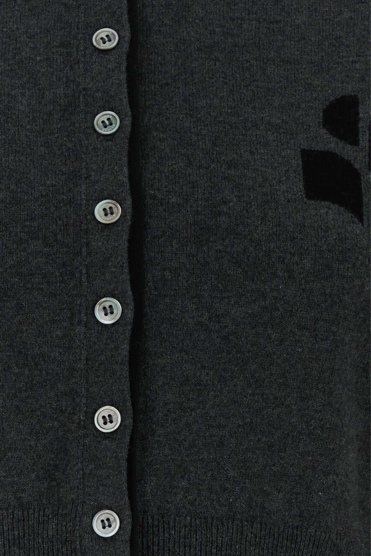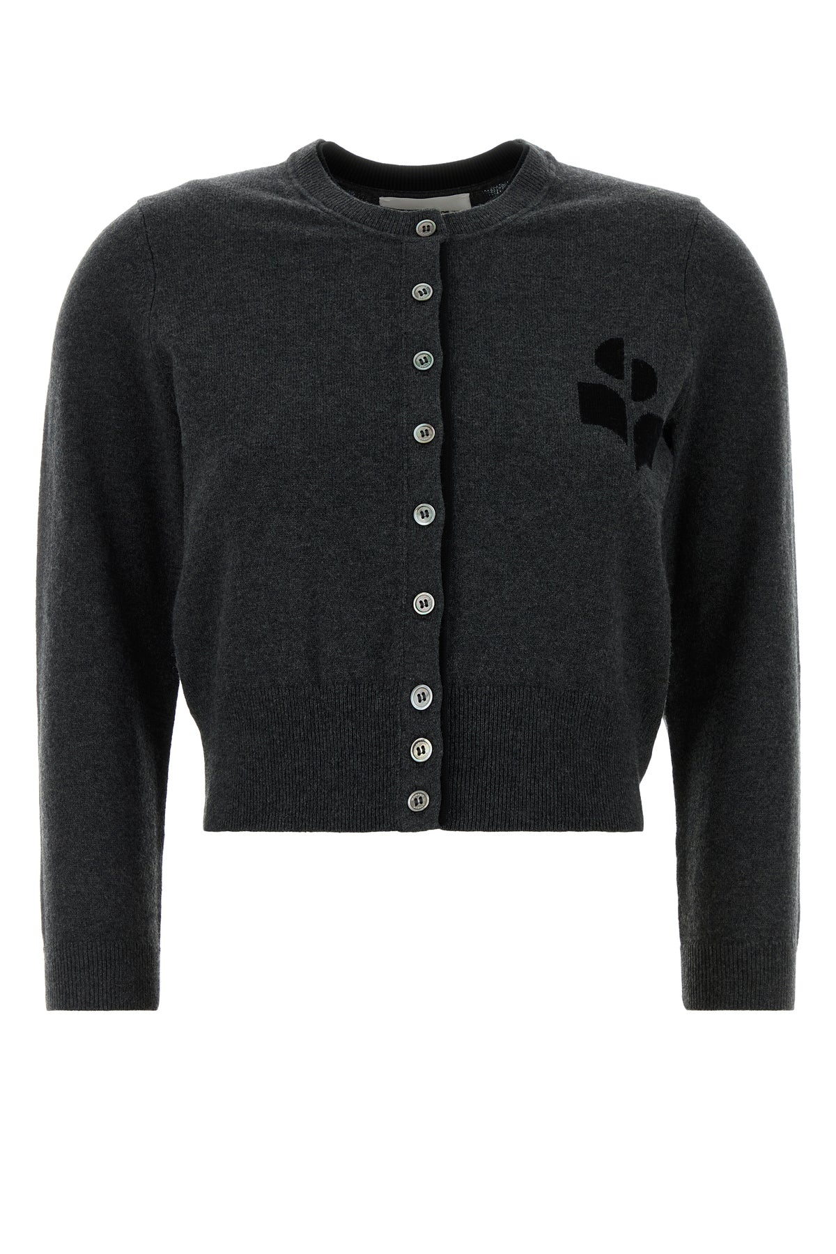 Cropped-cut cardigan realized in cotton and wool characterized by contrasting embroidered logo on the chest.