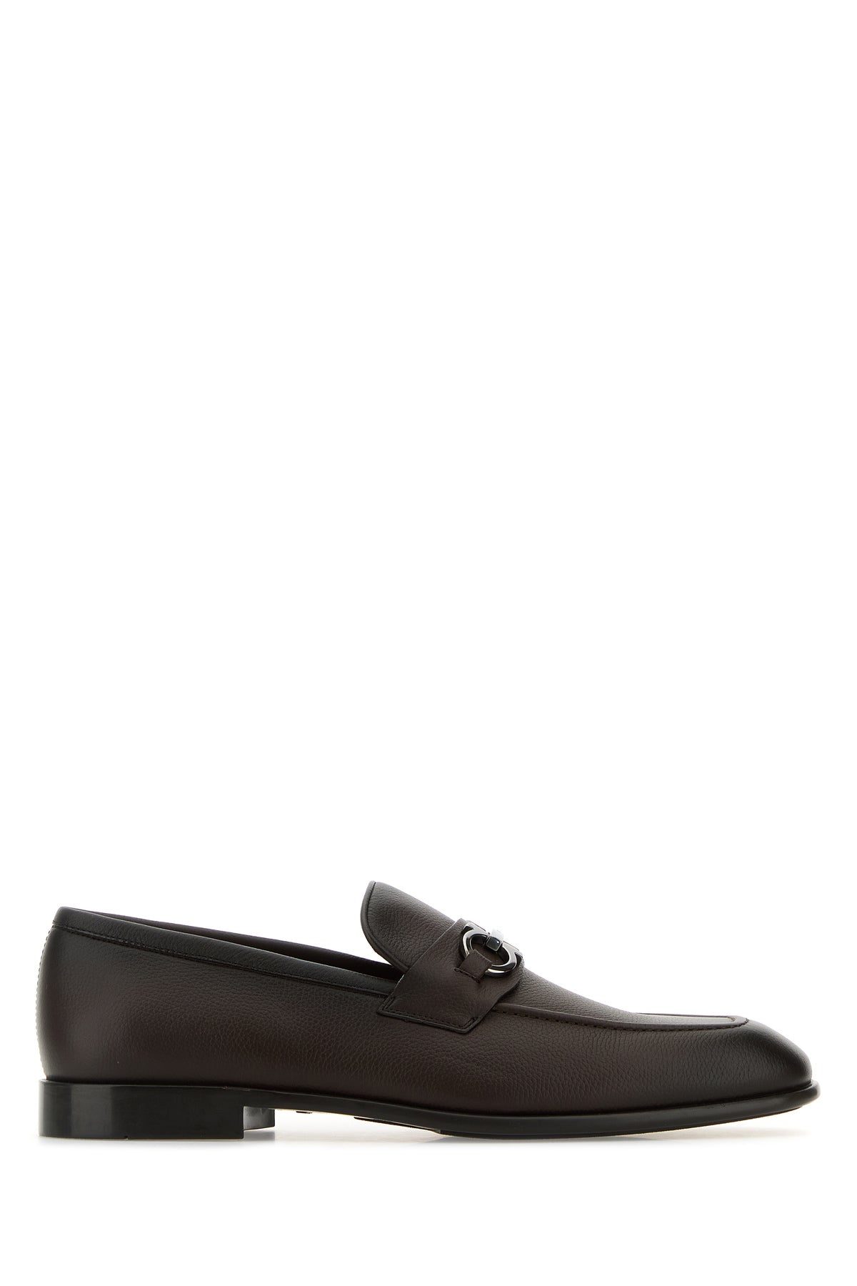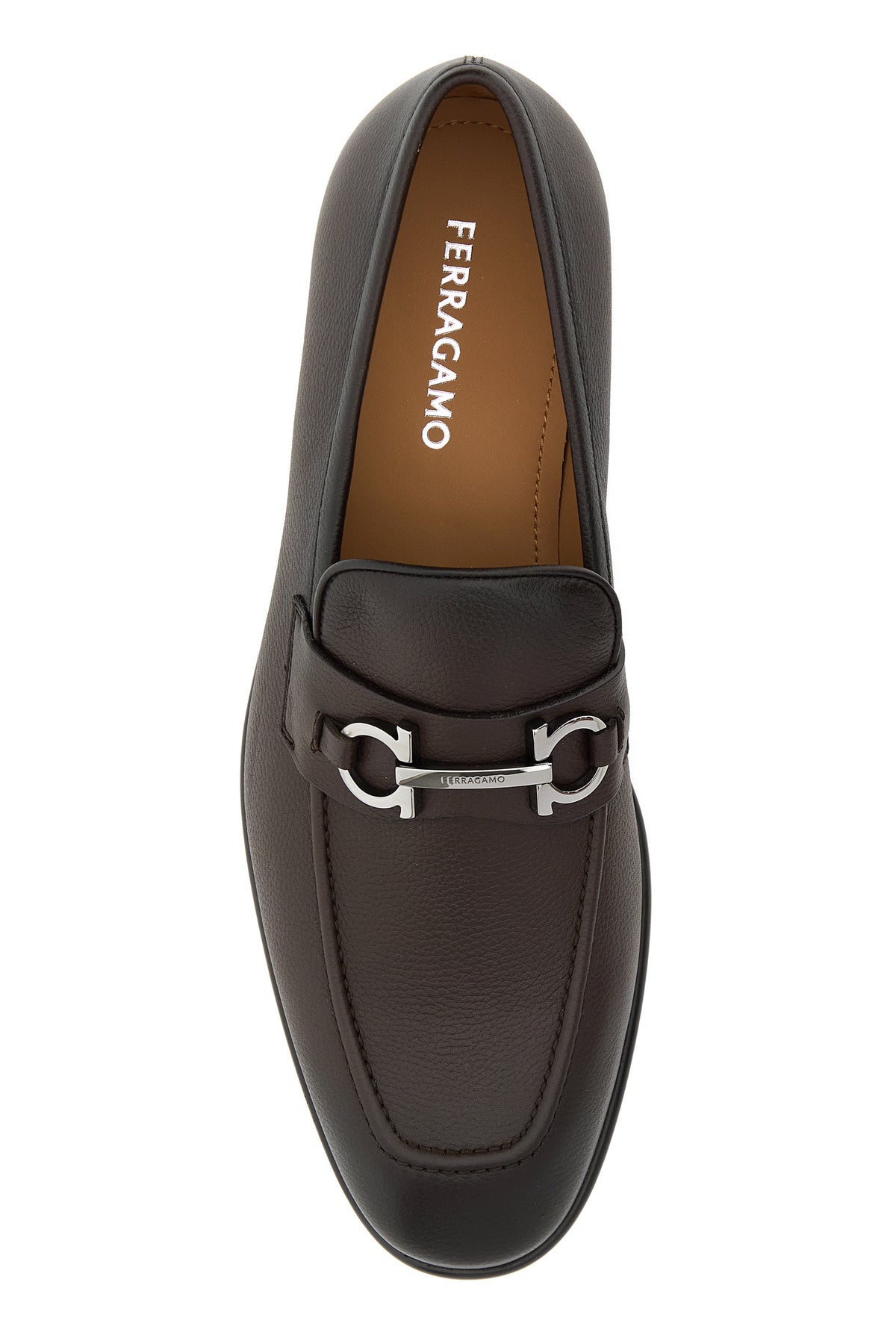 Loafers realized in pebble calf leather enriched by metal Gancini detail on the vamp.