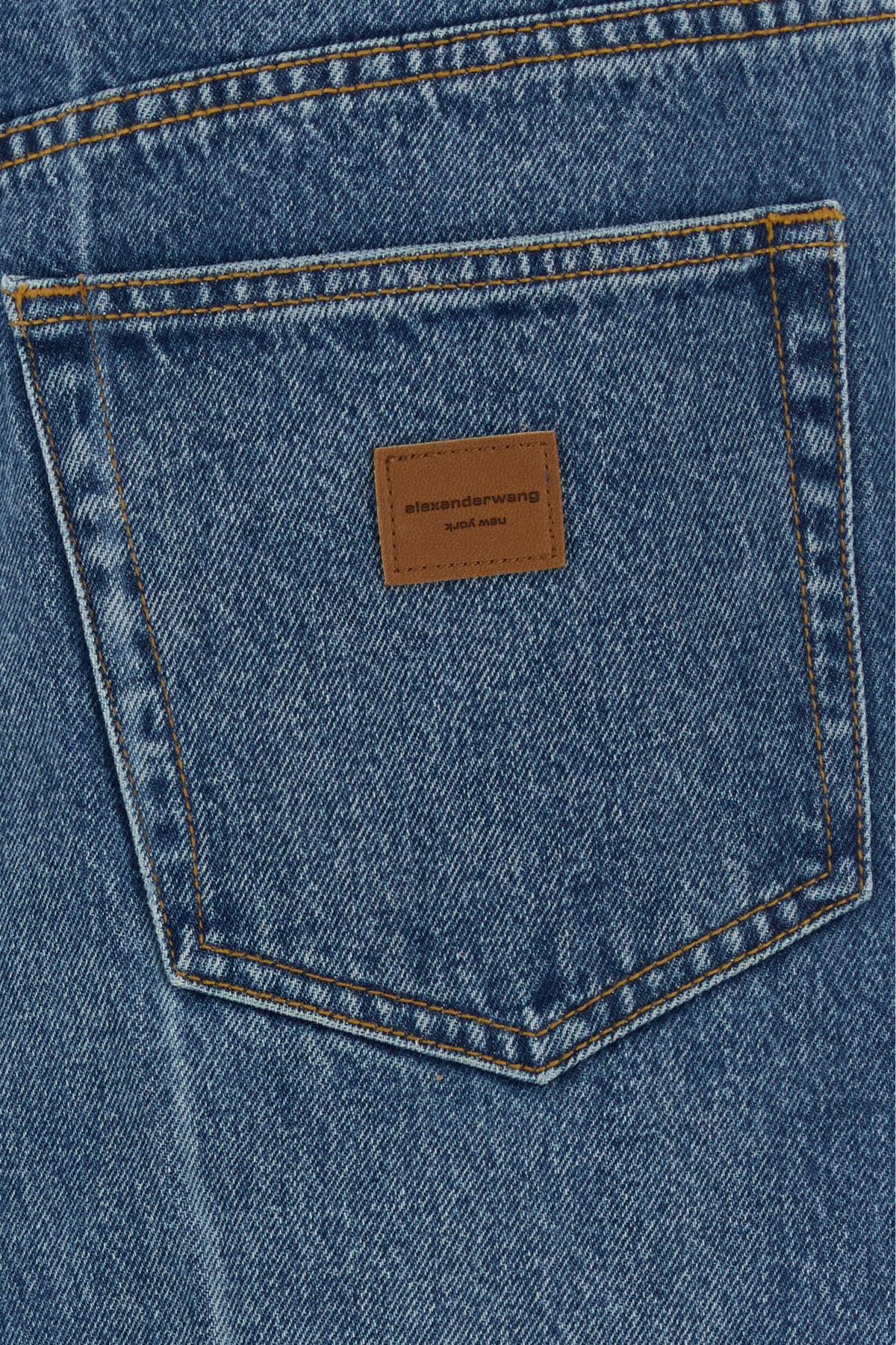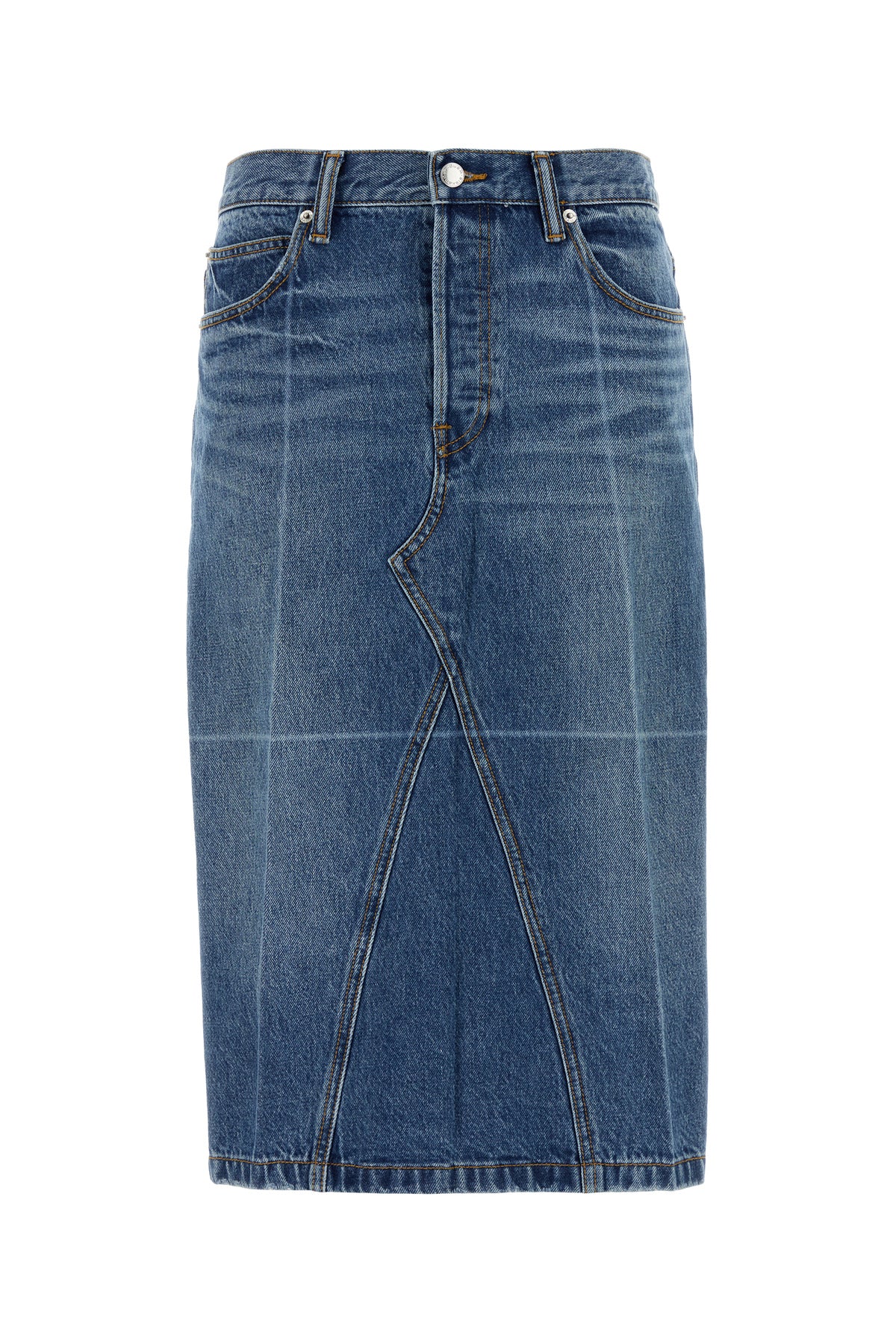 Midi-length skirt realized in stonewashed pure cotton denim enriched by logoed label at the back.