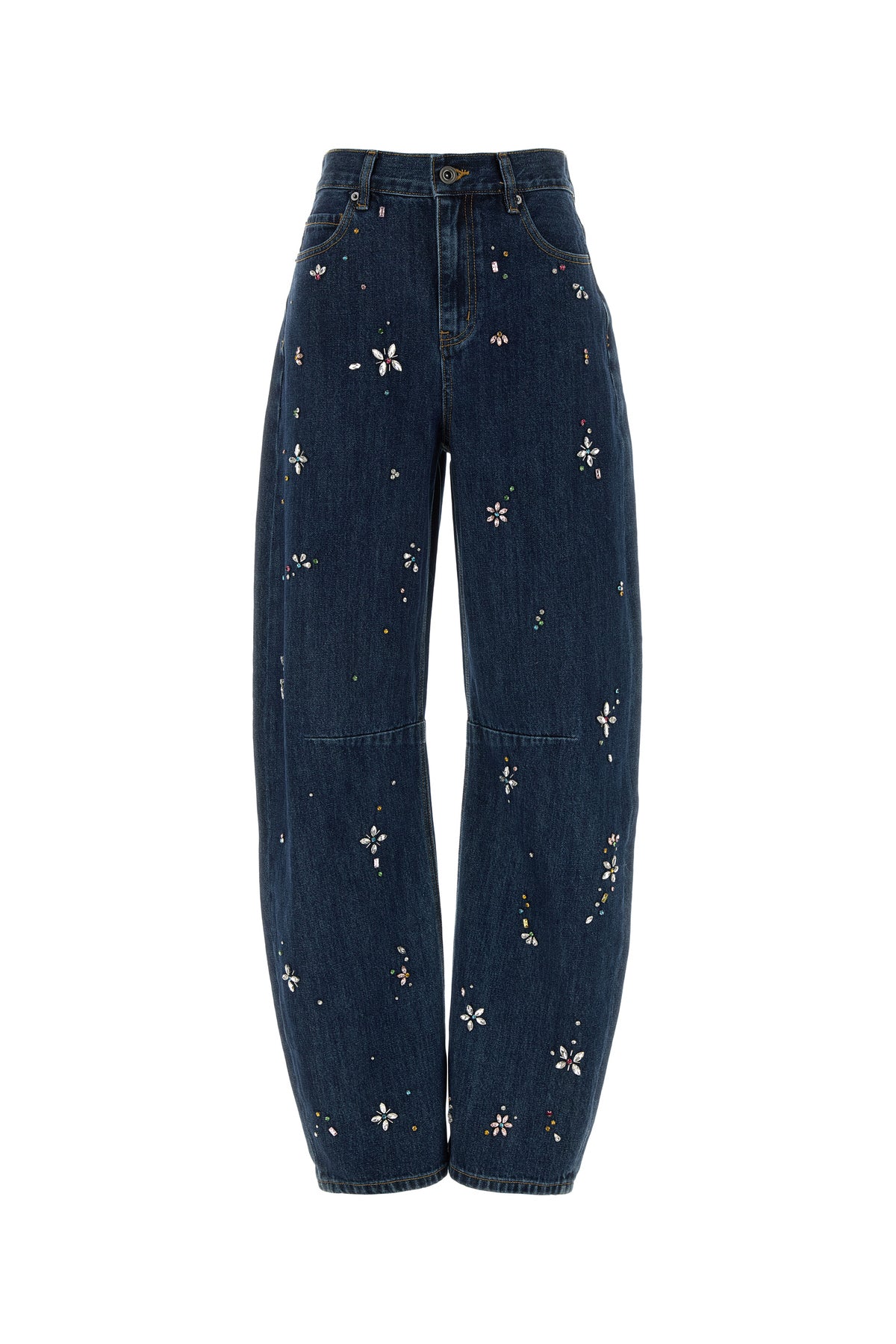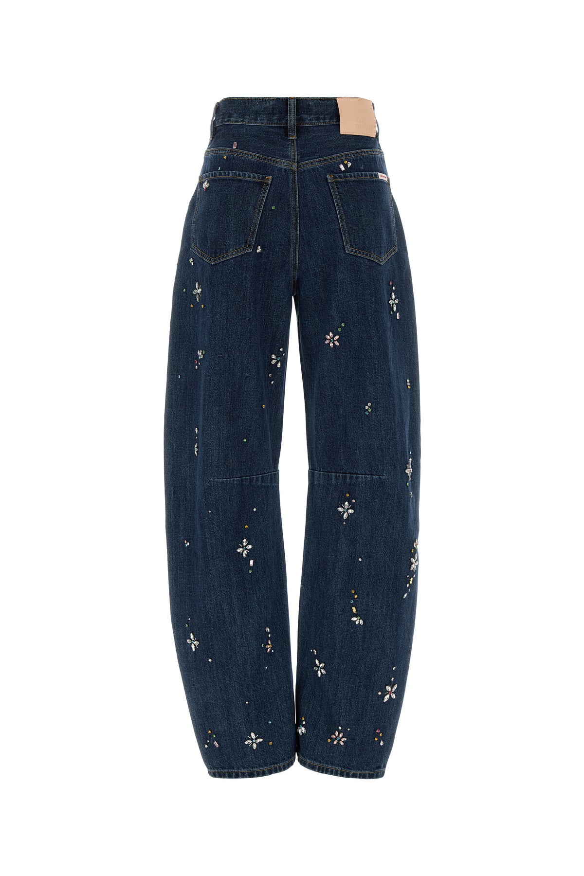 Wide-leg jeans realized in pure cotton denim enriched by jewel embellishments on the entire surface.