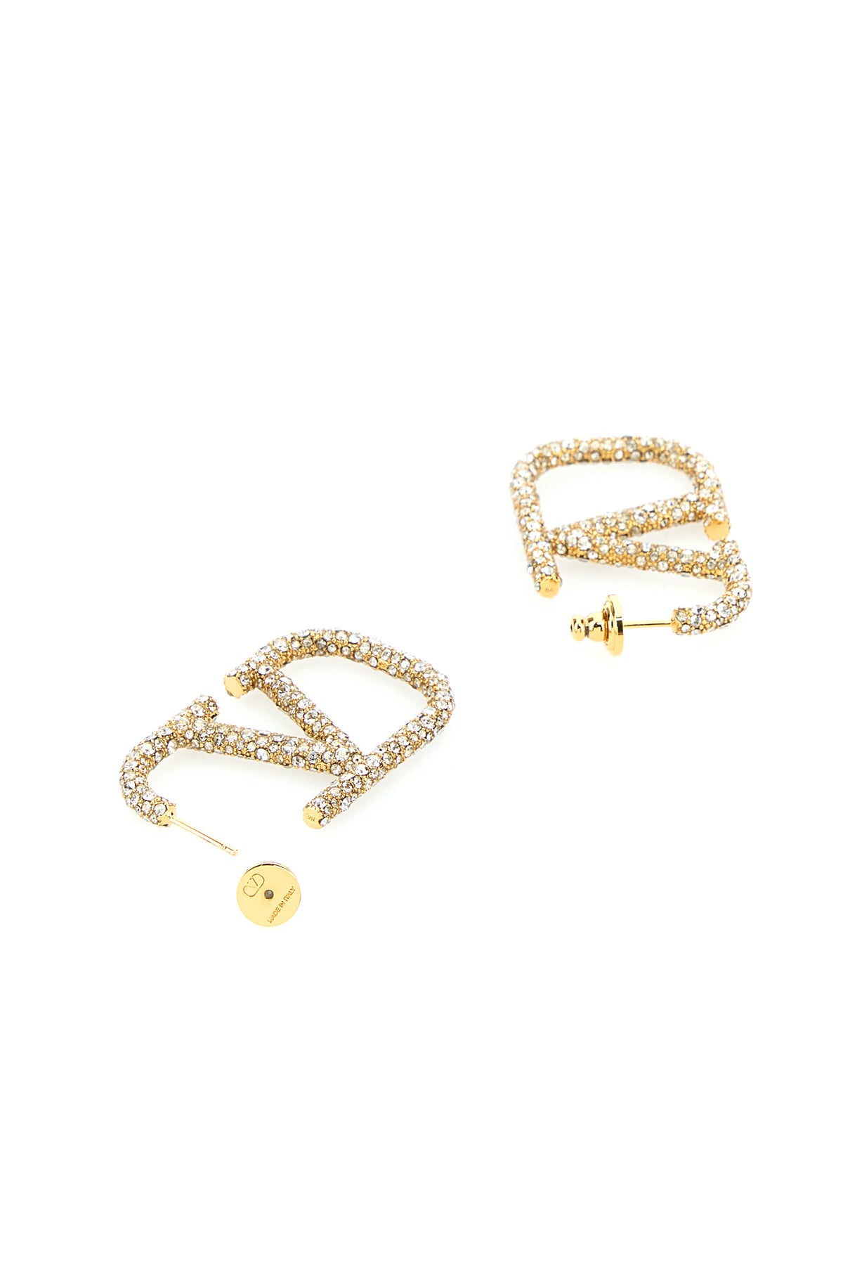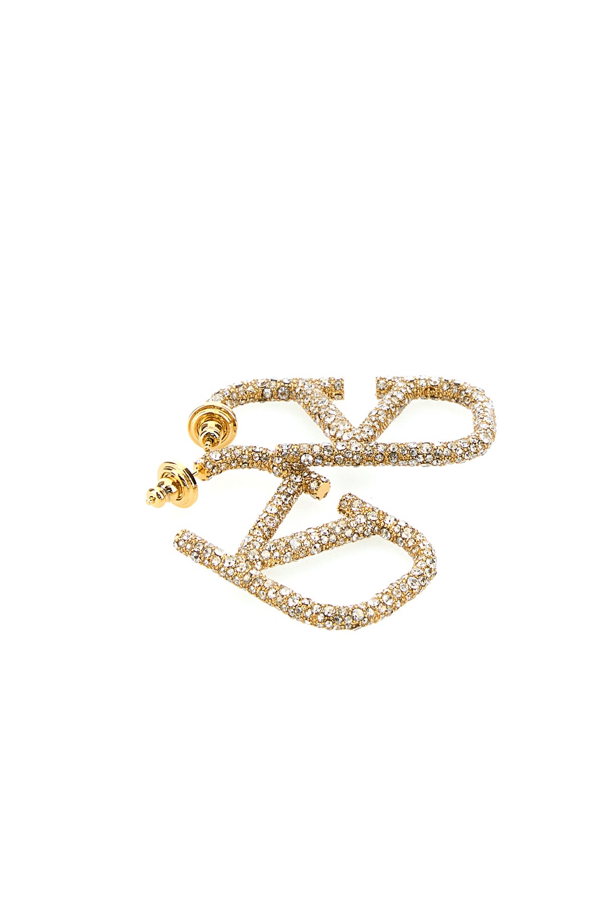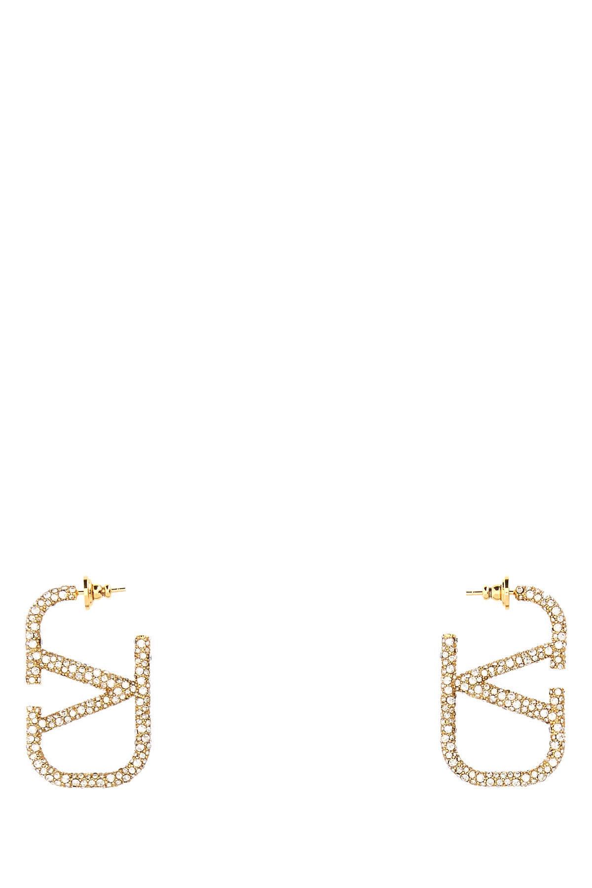 Pendant earrings realized in gold-tone plated metal entirely covered by Swarovski rhinestones.