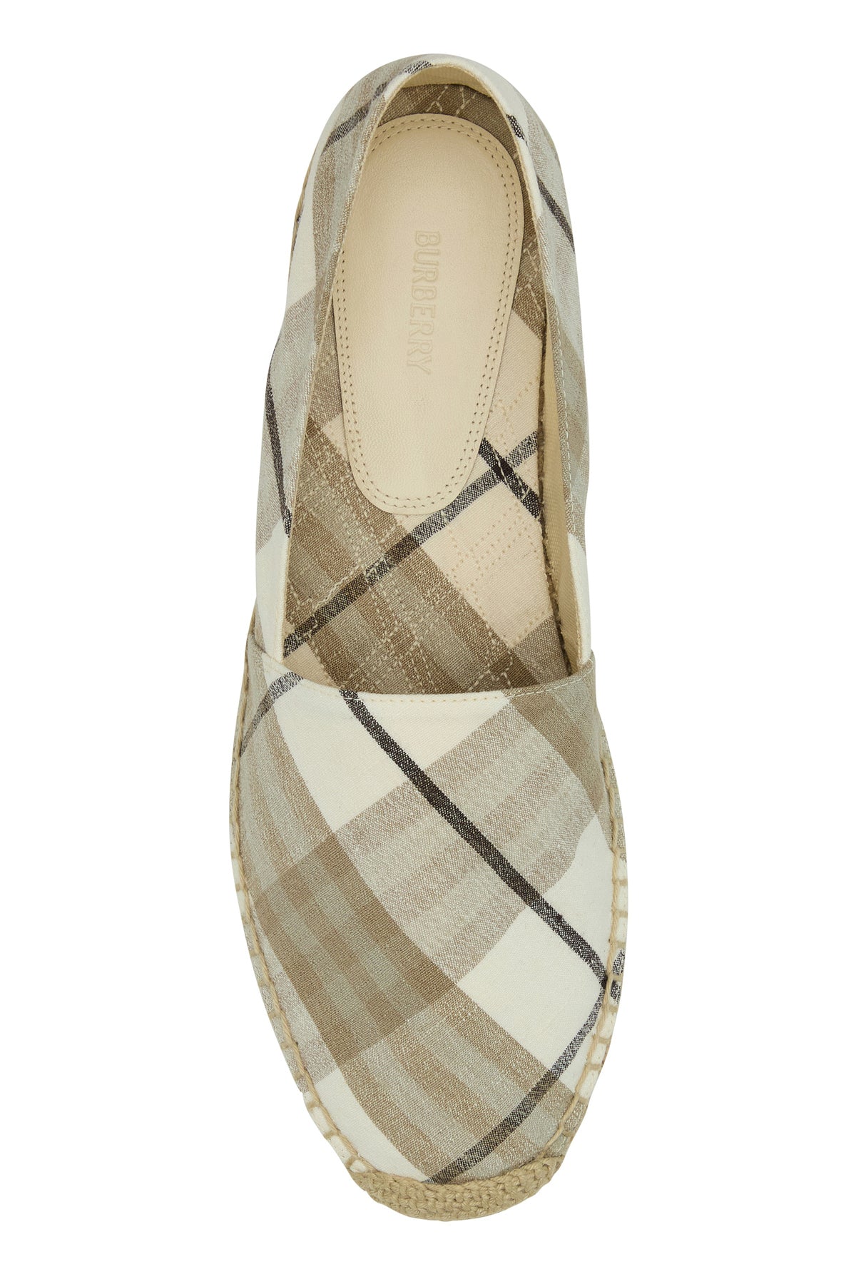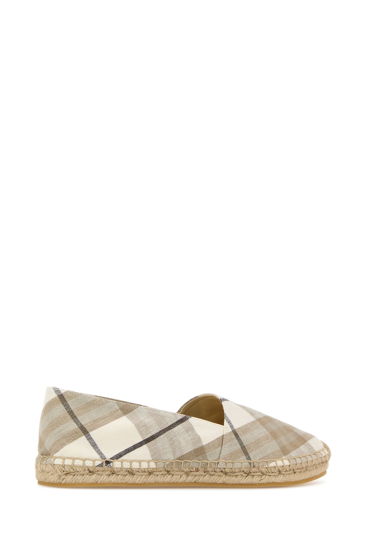 Espadrilles realized in stretch linen canvas characterized by Burberry Check motif embroidery on the entire surface.