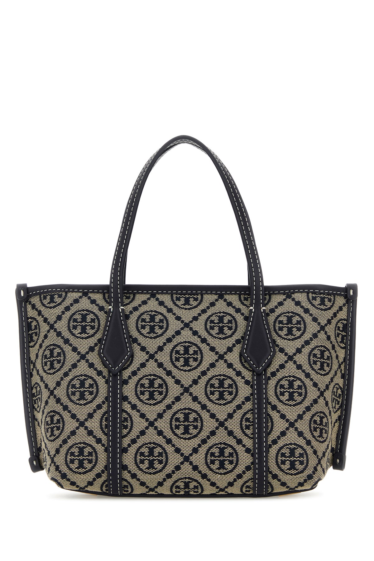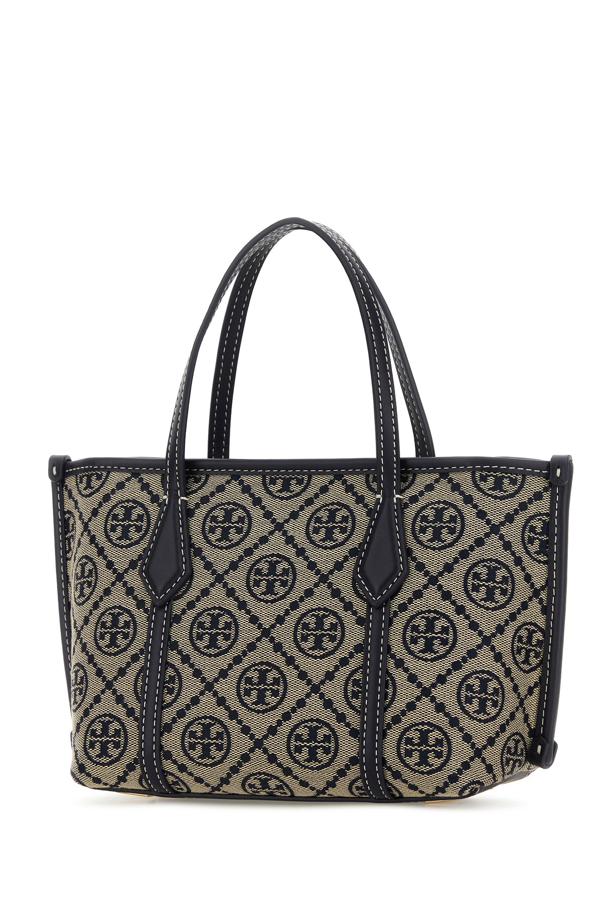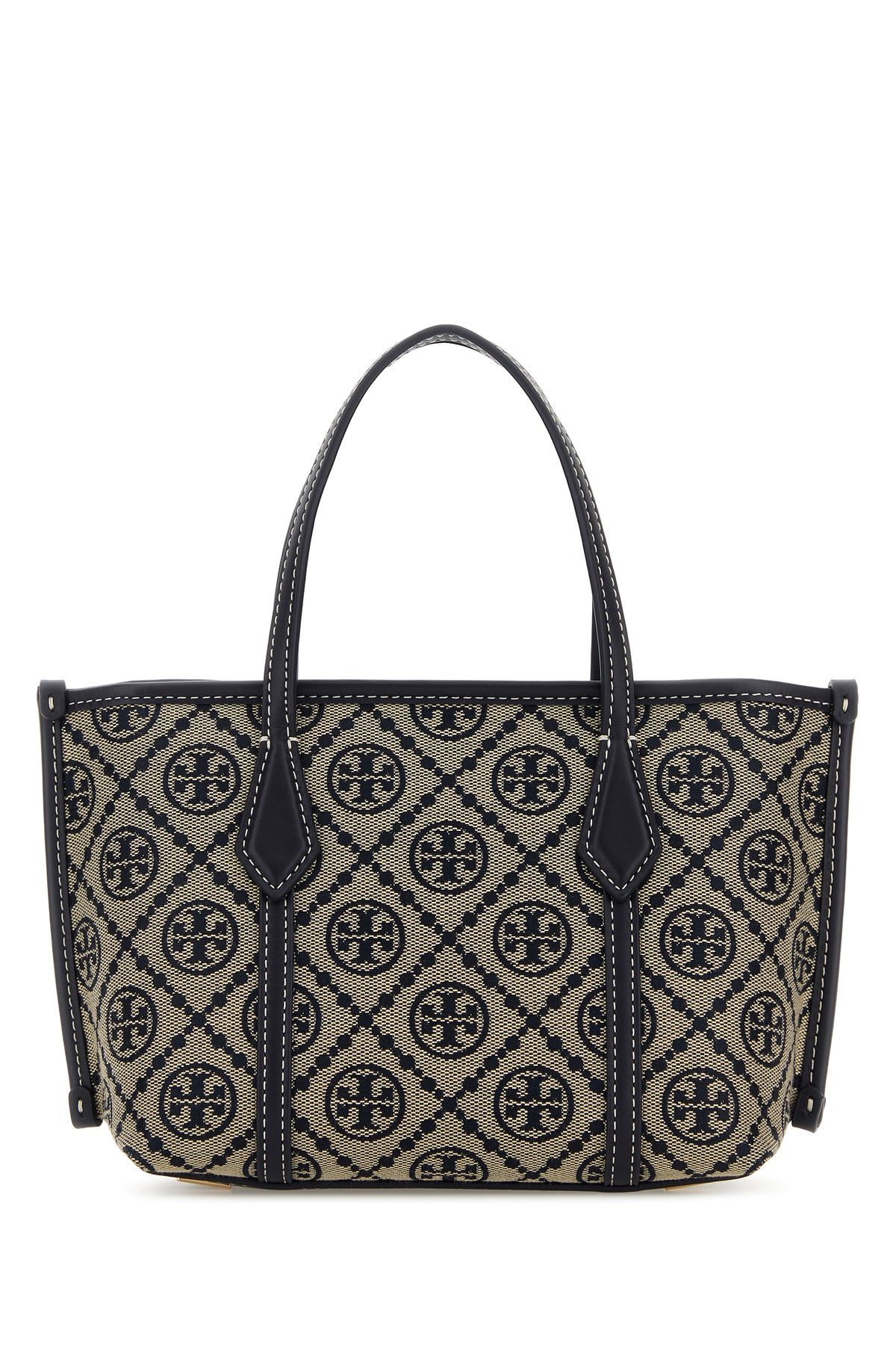 Handbag realized in canvas characterized by embroidered logo on the entire surface.