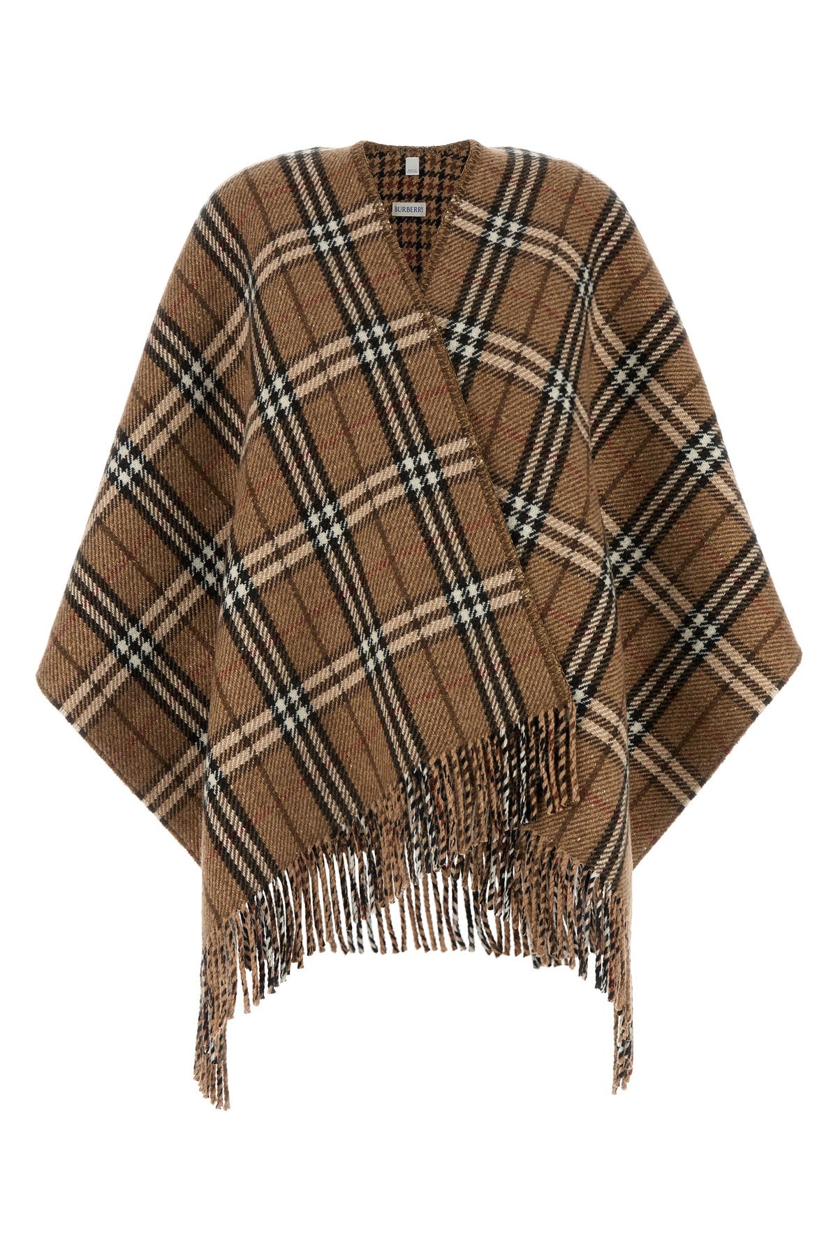 Reversible cape realized in cashmere and wool characterized by Burberry Check embroidery on the entire surface.