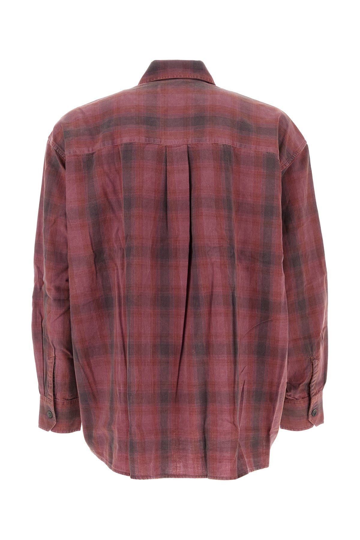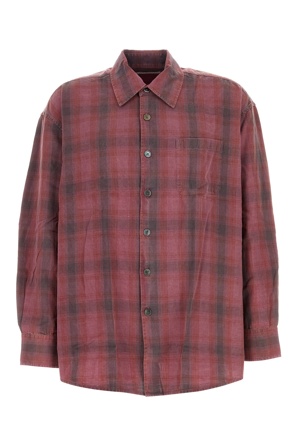 Oversize shirt realized in stonewashed pure cotton characterized by tartan motif embroidery on the entire surface.