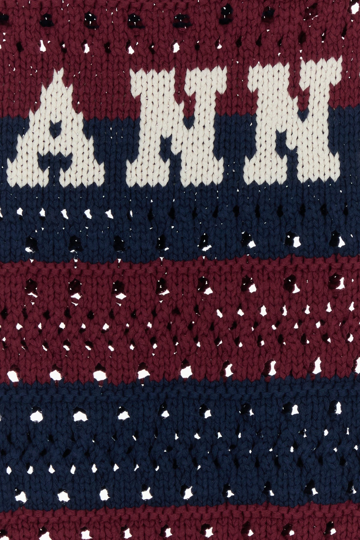 Vest realized in crochet characterized by striped embroidery on the entire surface and embroidered logo on the chest.