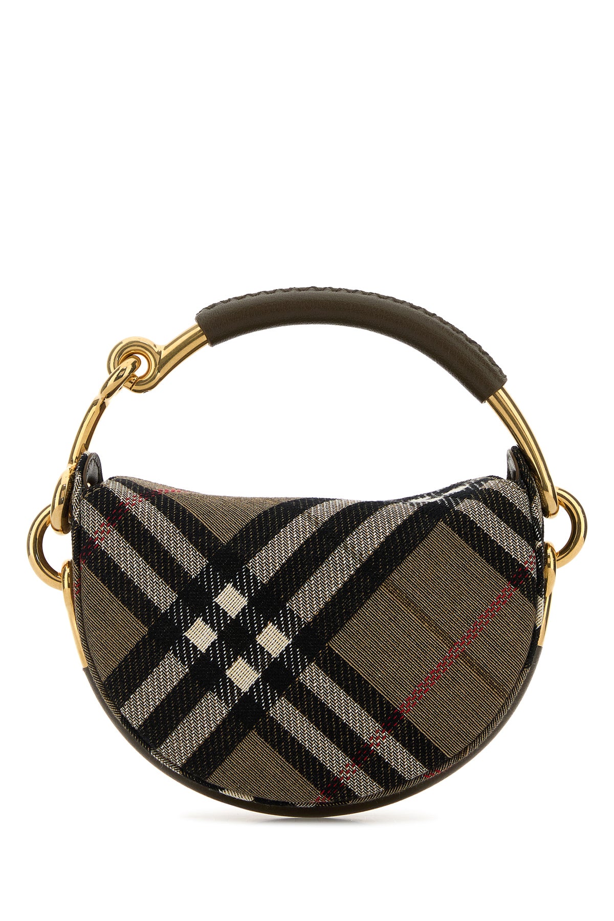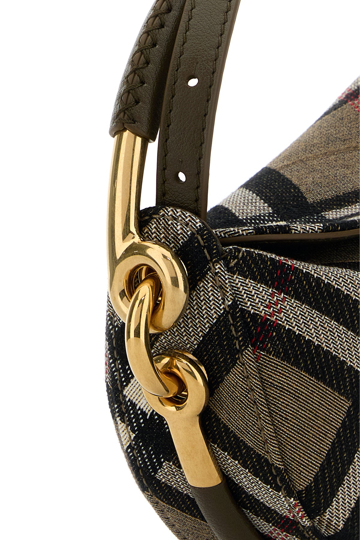 Handbag realized in cotton blend with calf leather insert characterized by Burberry Check motif embroidery on the entires surface.