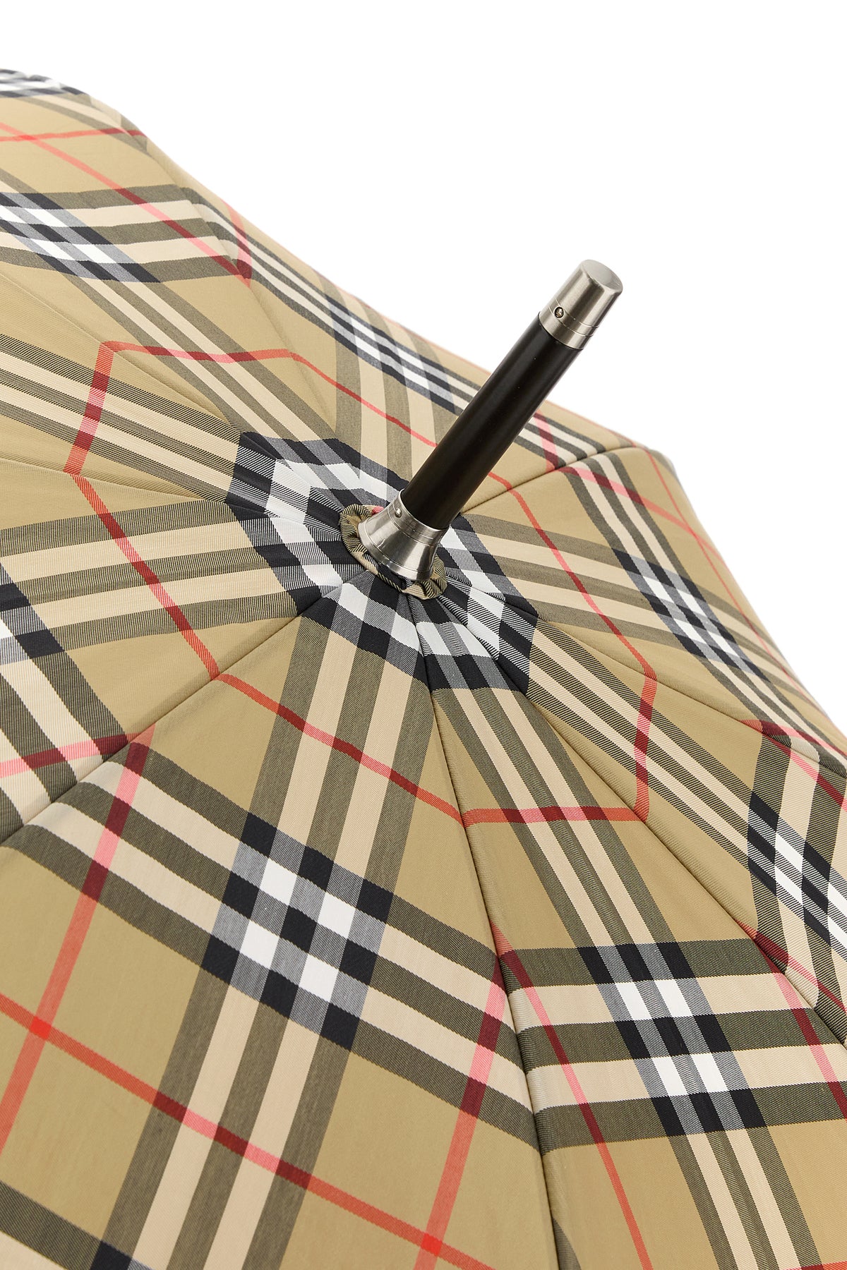 Umbrella realized in polyester blend characterized by Burberry Check embroidery on the entire surface.