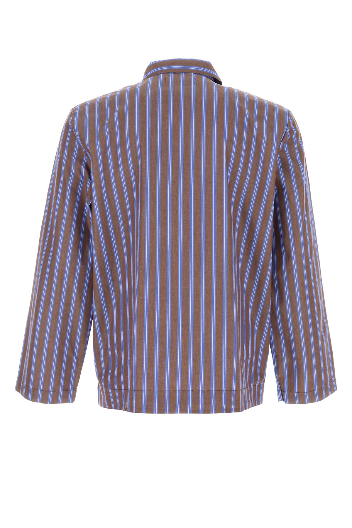 Oversize pyjama shirt realized in pure organic cotton poplin characterized by striped embroidery on the entire surface enriched by logoed label on the side.