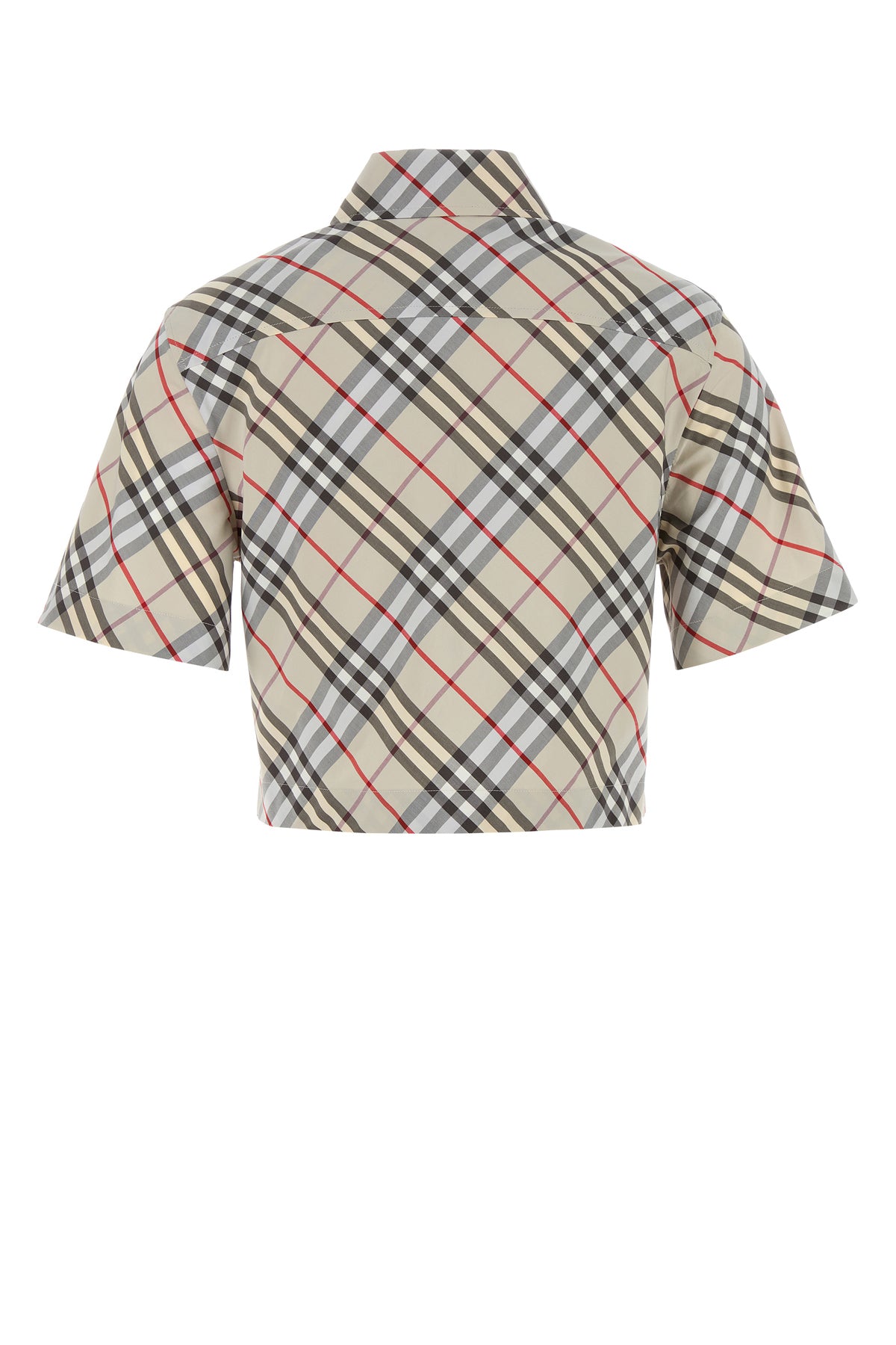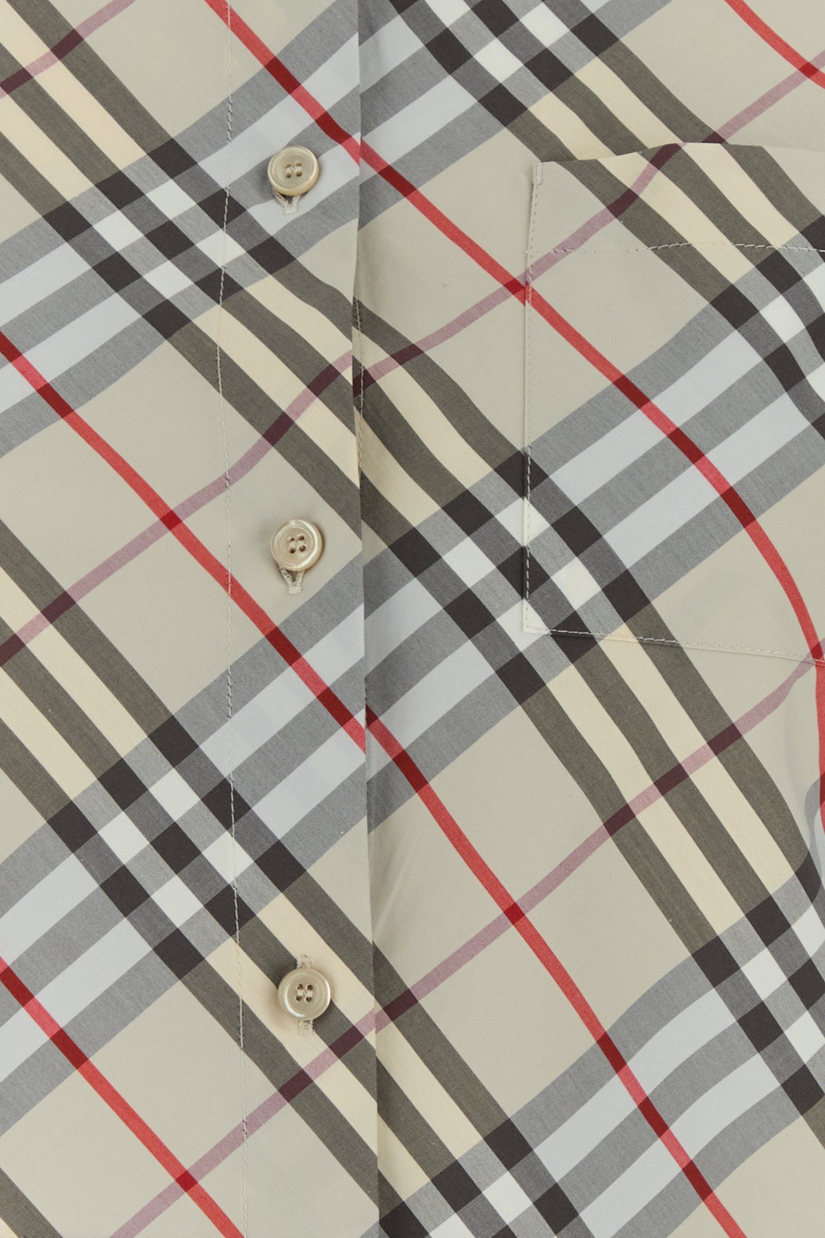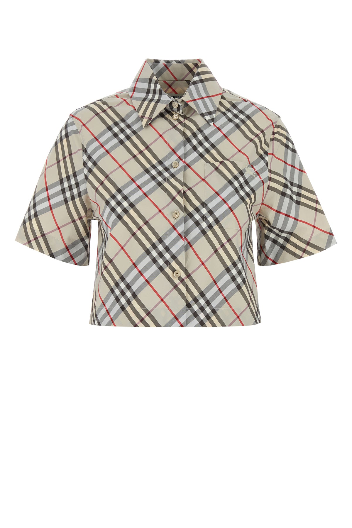 Short-sleeves shirt realized in pure cotton poplin characterized by Burberry Check embroidery on the entire surface and Equestrian Knight embroidery on the chest.