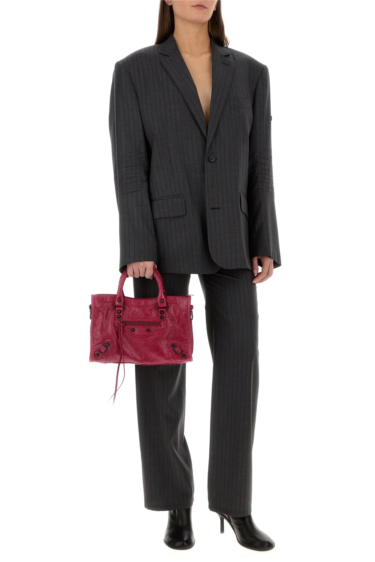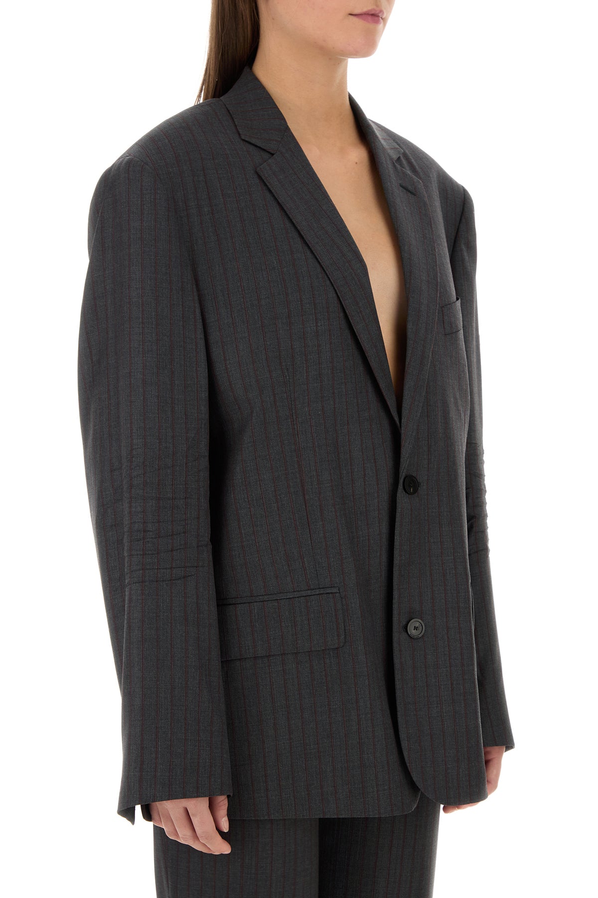 - Single-breasted closure by buttons
