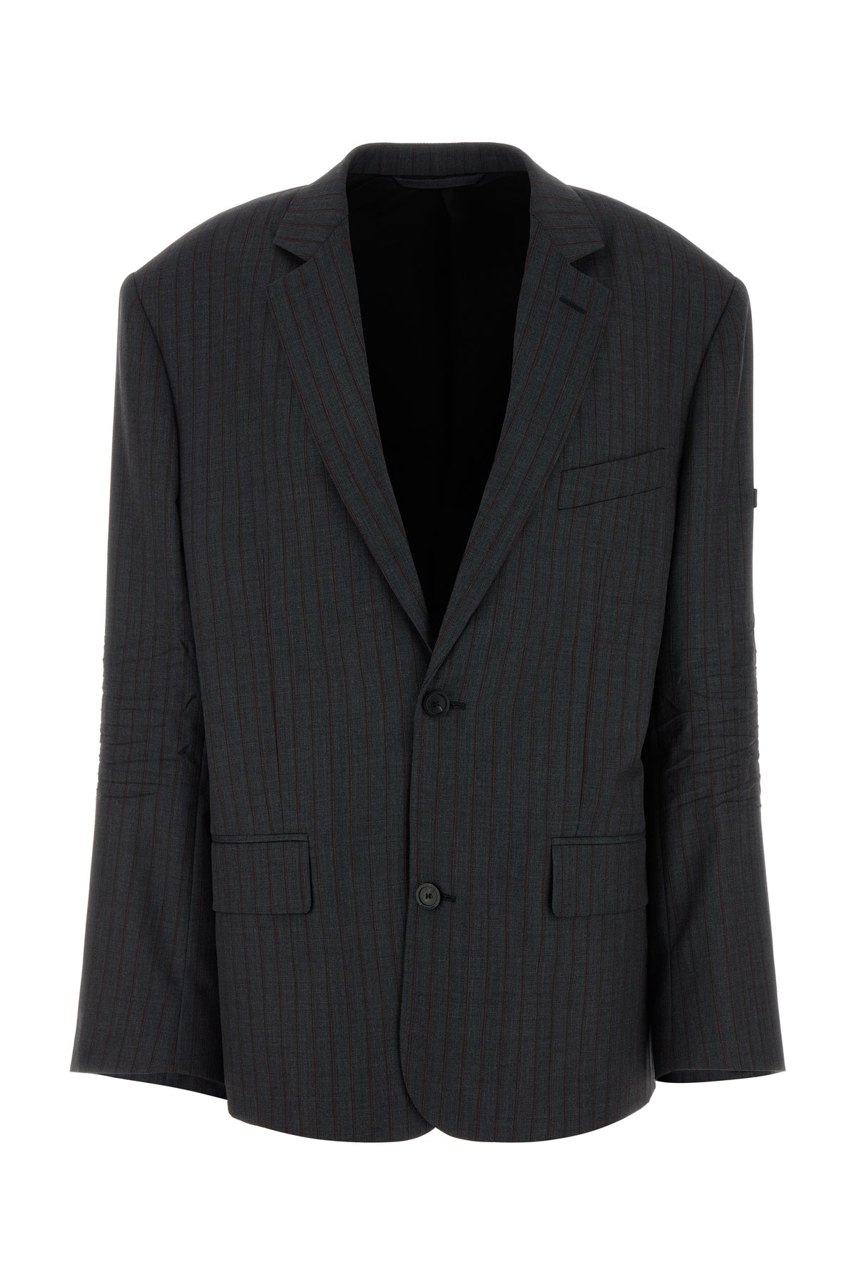 Blazer realized in pure virgin wool enriched by logoed label on the sleeve.