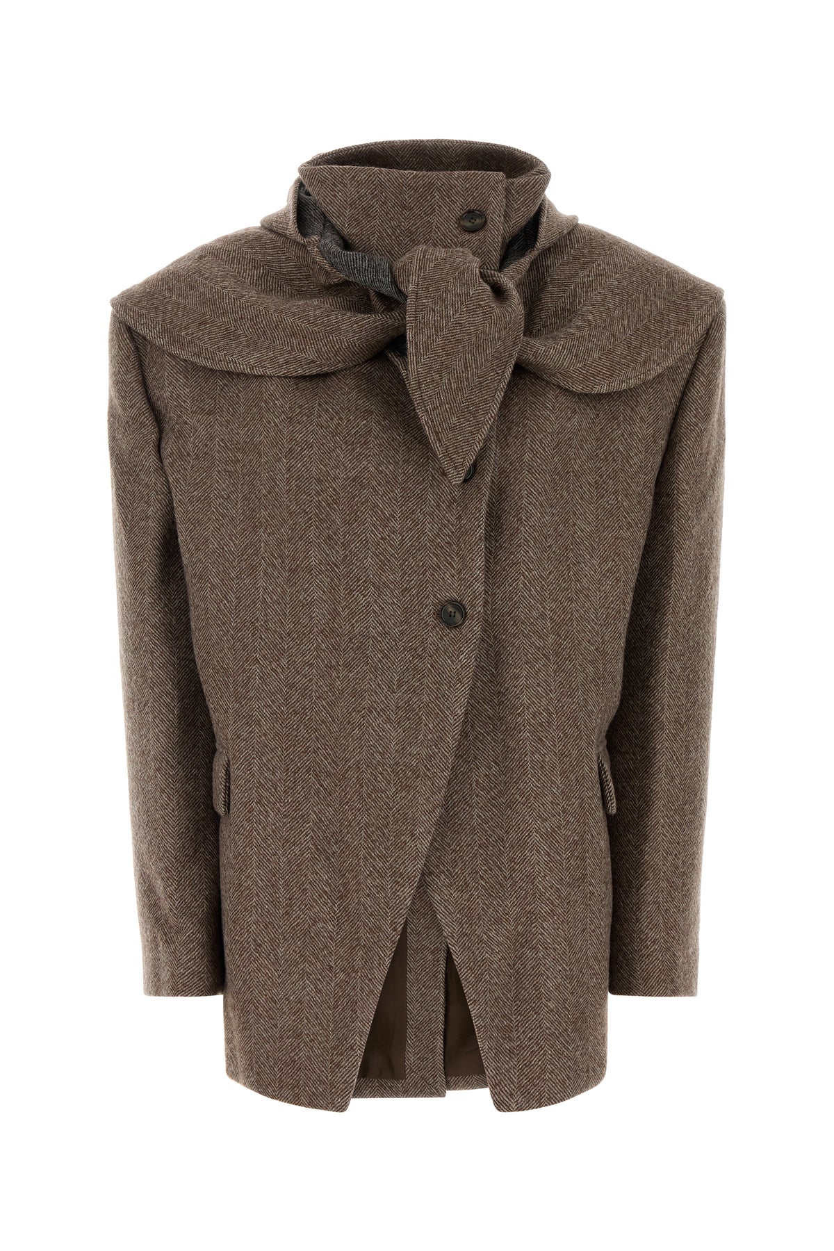 Blazer realized in wool blend characterized by herringbone motif embroidery on the entire surface.