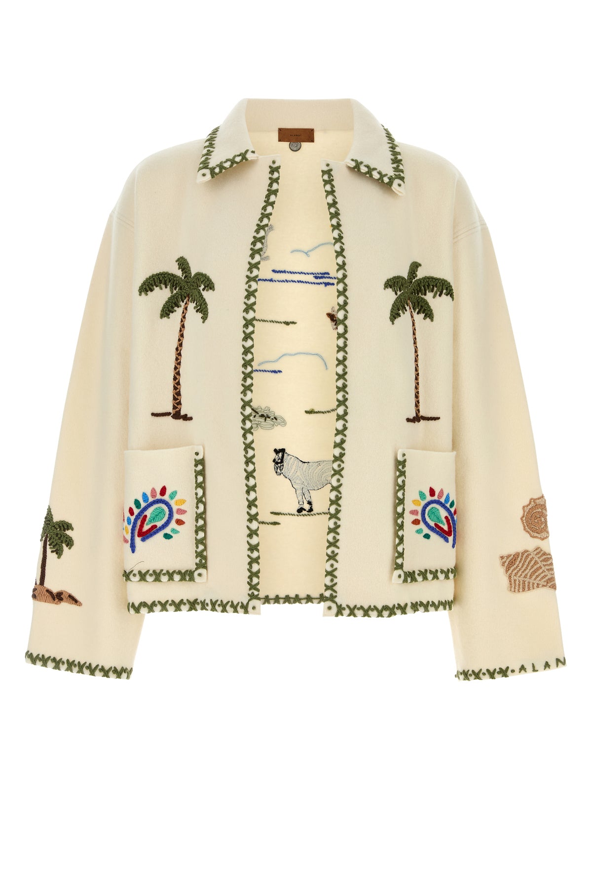 Jacket realized in pure virgin wool characterized by peculiar embroideries on the entire surface.