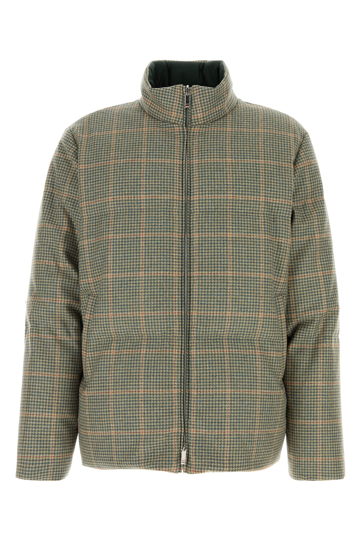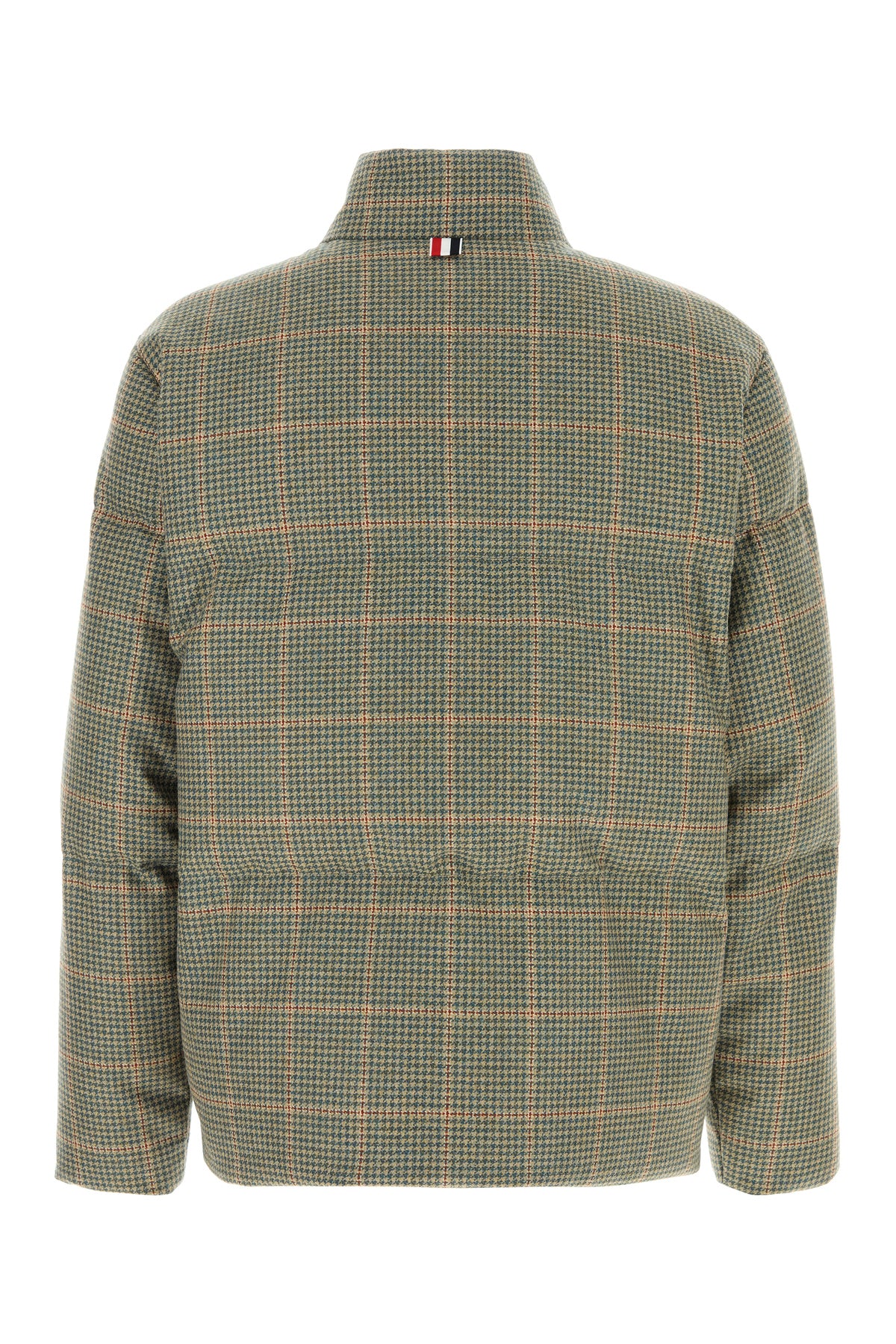 Reversible down jacket realized characterized by houndstooth motif embroidery on the entire surface enriched by iconic tricolor label at the back.